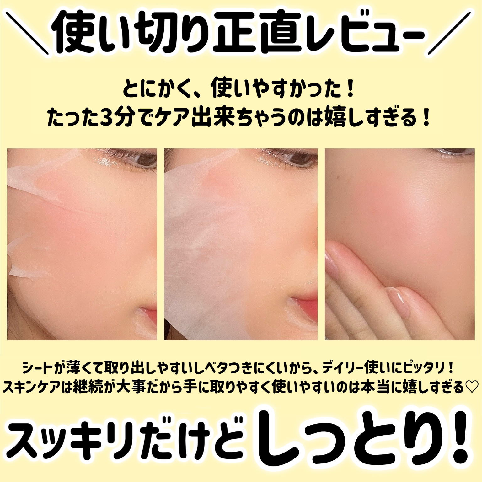 | スキンケアランキング第159位 | しっとりしているけどベタつかず良きです!! シートの目頭が切れ込みが入っていて密着しやすいため剥がれにくいです! | 詳細を見る | |