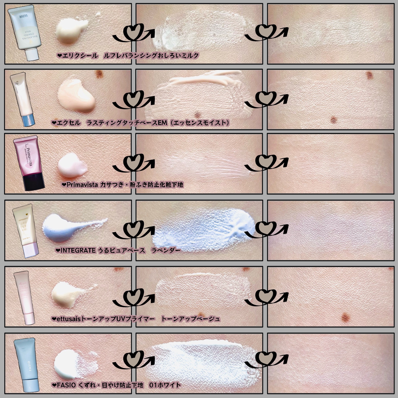 kissマットシフォン《メイクアップベース》3種類レビュー1.UVホワイトニングベース2.UVモイストベース3.UVハイカバーベース色味画像→01ライトワントーン上がるカラー02ナチュラル肌に馴染むカラー色味は01でレビューします1.ワントー...