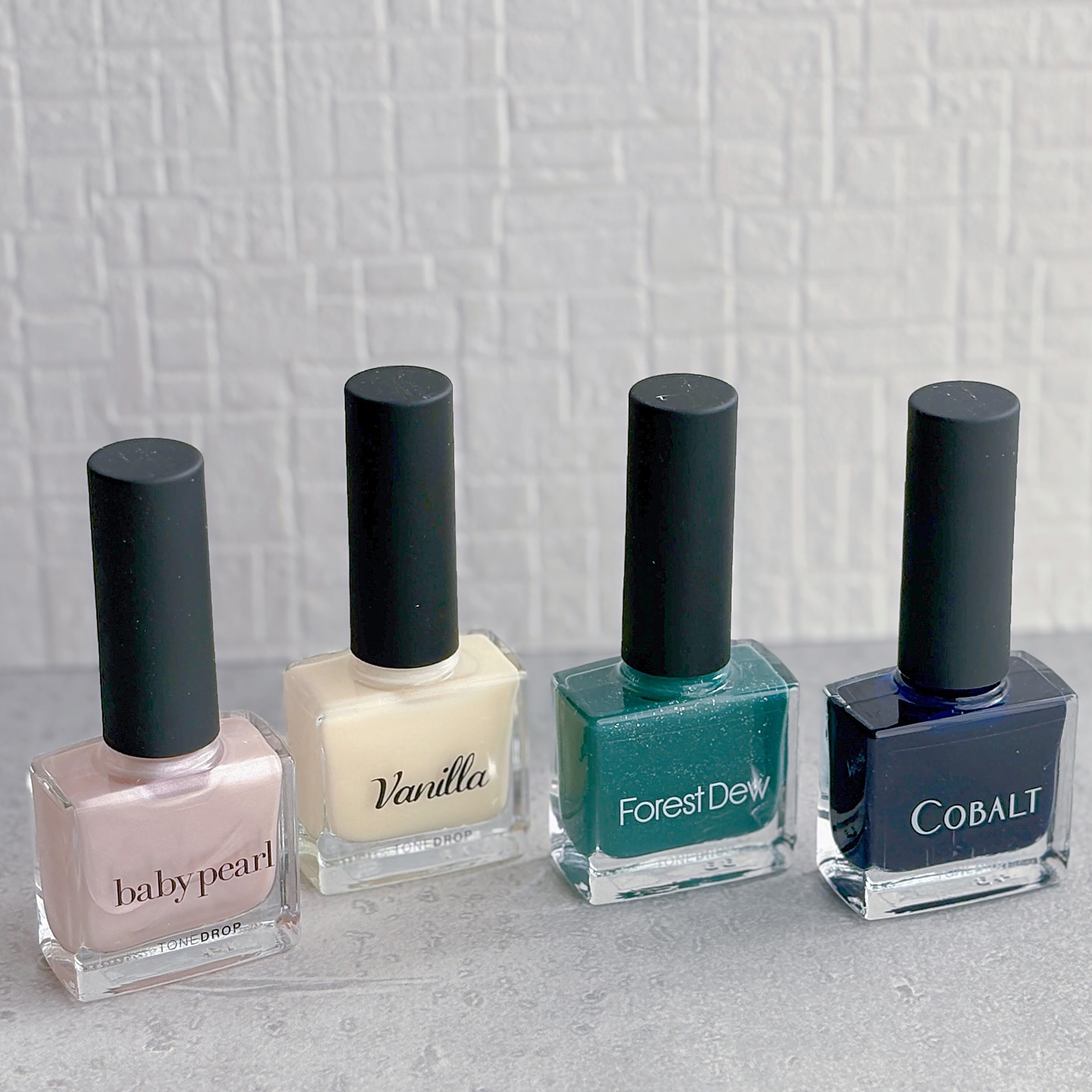 トーンドロップの春の新色登場✨️ 塗るだけで美爪の万能カラー2色と引き立て華やかな差し色カラー2色! 春って結構シンプルな服を着たくなるんだけど、そこにどんぴしゃで合うようなカラバリ🫶🏻 どのカラー選んでもお洒落に決まる✨️ 3月21日から一部バラエティショップと公式オンラインショップにて発売⭐️