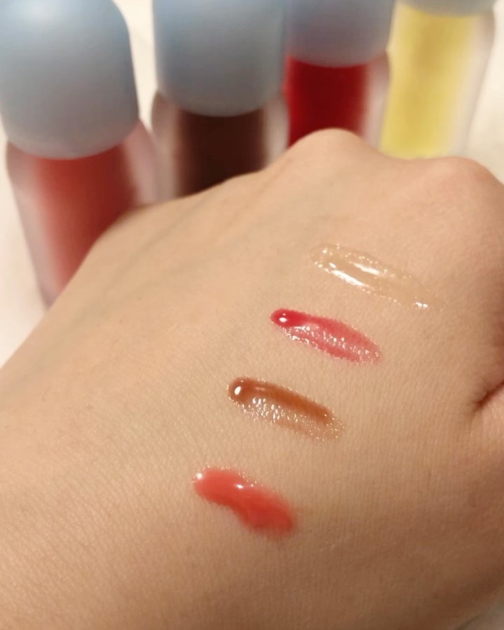 ころんとしたデザインと、水色の蓋がとっても可愛い!カラフルで豊富なカラーバリエーションも可愛いです。 ぷるんとジューシーなテクスチャーのリップオイル。すっと伸びて、唇にぴたっと密着してくれます。 特に私が気に入っているカラーは17 ベリーミルクと、18 コージーピンク。肌なじみの良いニュアンスカラーがとても可愛くて気に入っています。