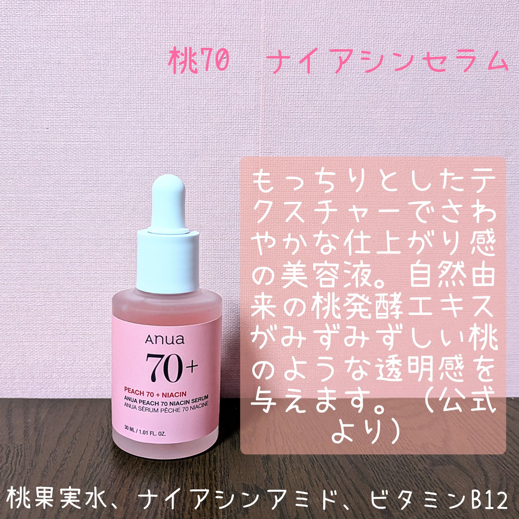 Anua 桃70%ナイアシンセラム | 2,579円 |