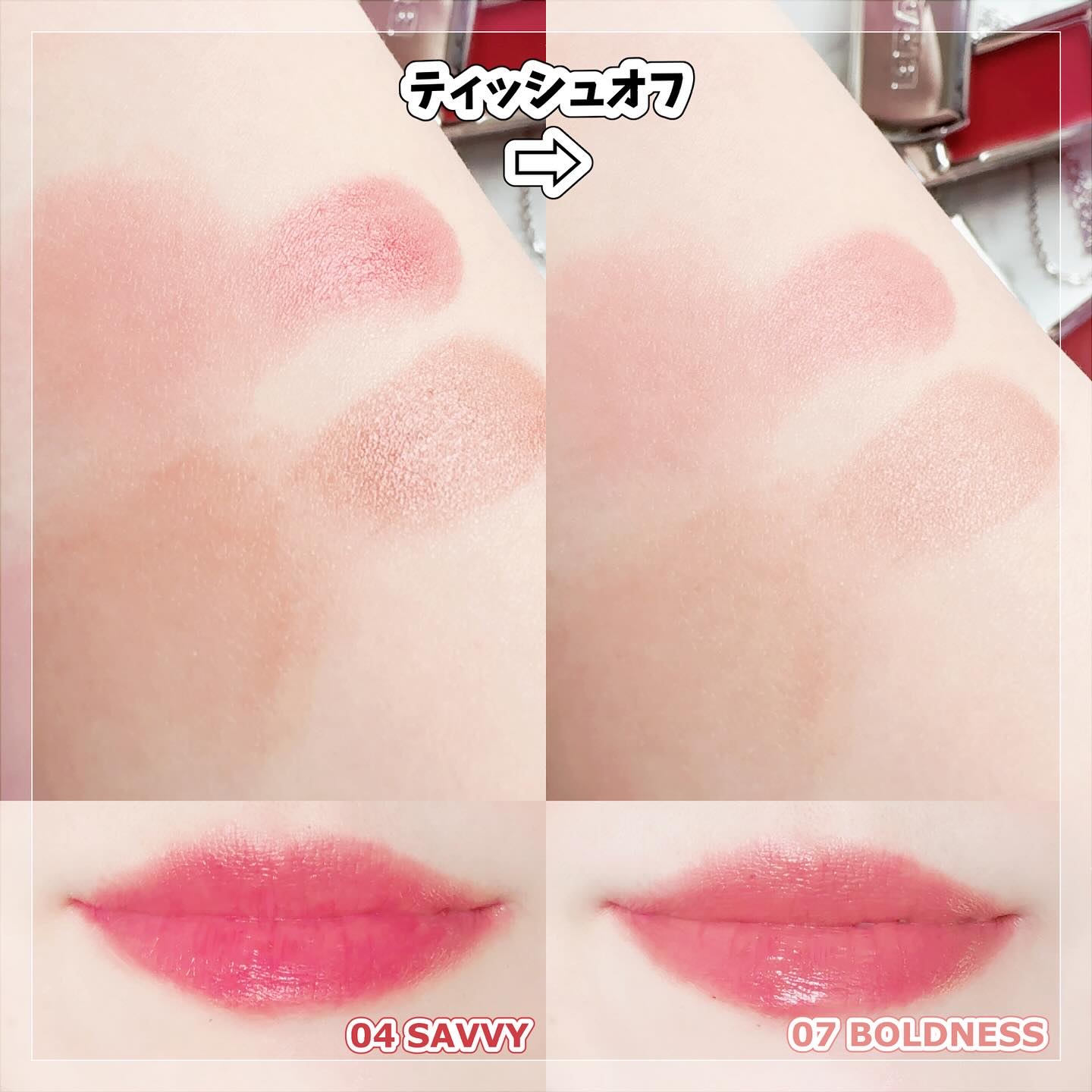 高屈折オイル配合で、どの角度でもツヤツヤの厚みがあるぷっくりリップ 色あせたようなソフトディープモーヴ 発色は強すぎず自然に色付きうるちゅるになり、まるでエンジェルリングがついたような唇に 厚みがあるテクスチャで細かい縦じわがカバーされ、ボリューミーでむっちりとした唇に見えて可愛いです❤