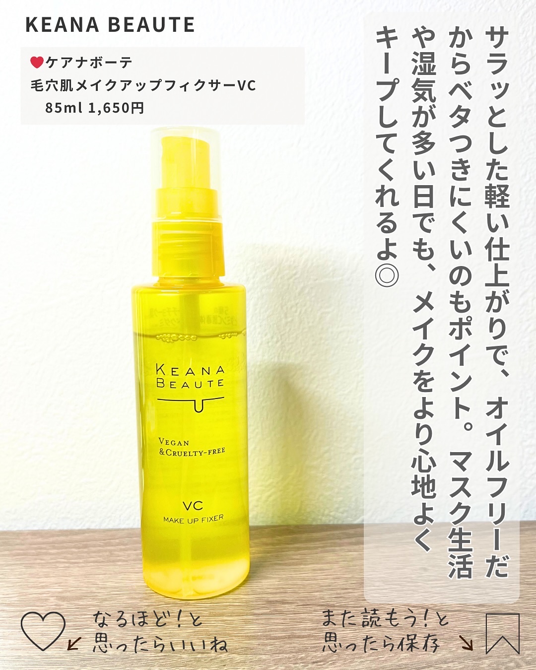 毛穴落ち・メイク崩れ・皮脂テカリを防ぎ、長時間メイクをキープ 5種のビタミンC誘導体とアーチチョークドクダミ配合でメイク崩れを防止しながら毛穴ケア 微粒子のミストでベタつき感がなく、肌に密着している感じでした。