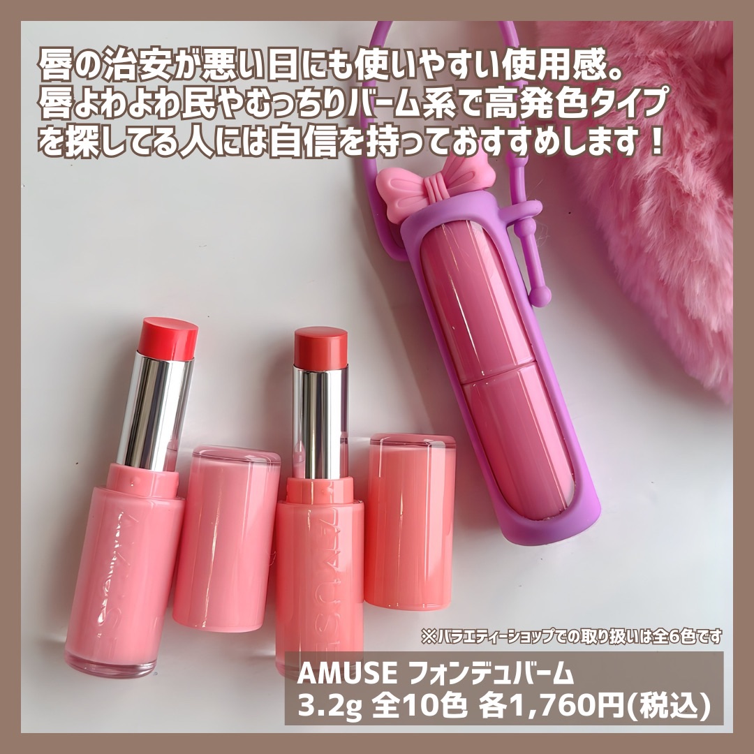 ︎【AMUSE】.⋆𝜗𝜚𝐹𝒪𝒩𝒟𝒰𝐸𝐵𝒜𝐿𝑀*.・🤍𐙚04PINKBOKSOONGA06NUDISHなめらかにもっちりと密着するメルティングカラーリップバーム♡プランピング効果もあってウォニョンみたいなツヤツヤぽってりリップをつくるのにピッ...