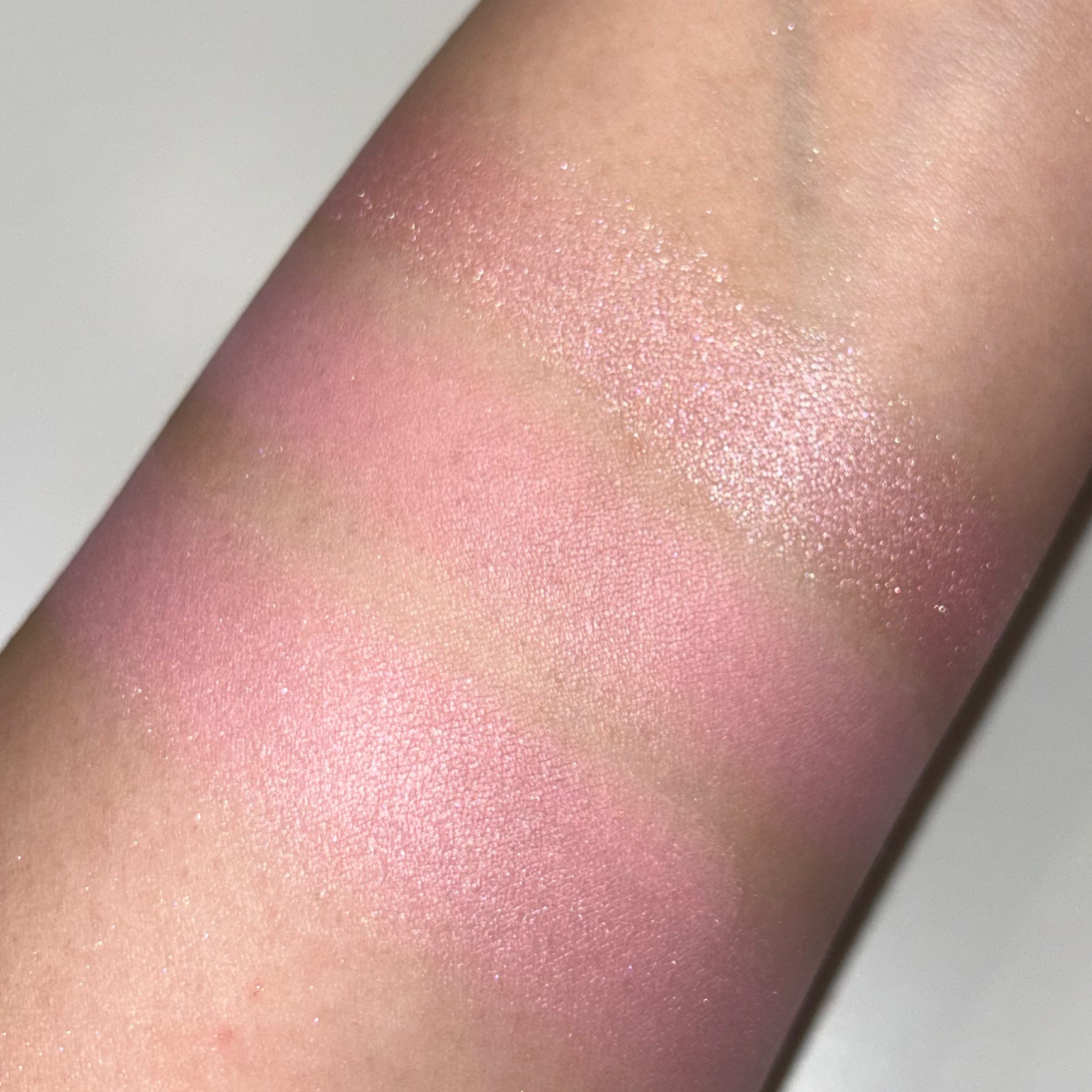王道ピンクチークで見たまま発色。 ハイライターもピンクなので統一感あるメイクができる◎ いちごミルクみたいな可愛い系メイクの日は絶対これ🍓 ハイライター部分の色は涙袋に足しても可愛い👌 このチーク鼻先にも塗るとあざと可愛い感じになるのでほんと万能。 注意点はふかふかブラシだと色がのらないことと、パウダー仕上げの後に重ねるとこれもまた色がのらないこと。