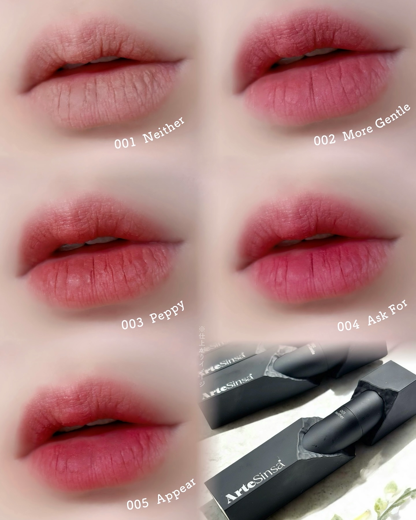 - 【Silky Blur Tint 】は「彫刻ティント」で話題となったArteSinsa初のマットティントです。 ムースのように軽やかに馴染み、なめらかにブラーリングされる軽めのテクスチャーで、長持ちする着色力と高い保湿力を兼ね備え、唇に優しい使い心地で使用でき密着力も◎!