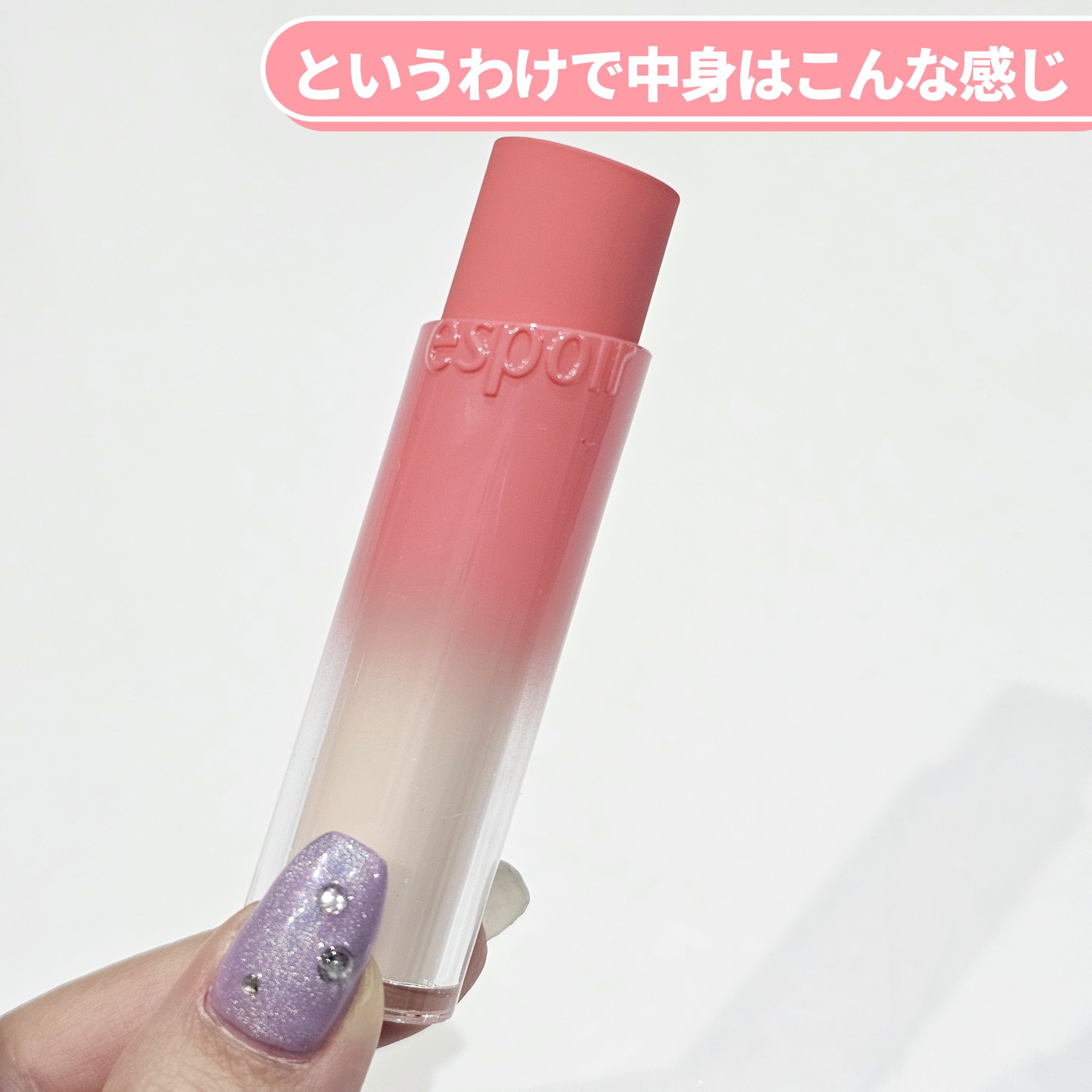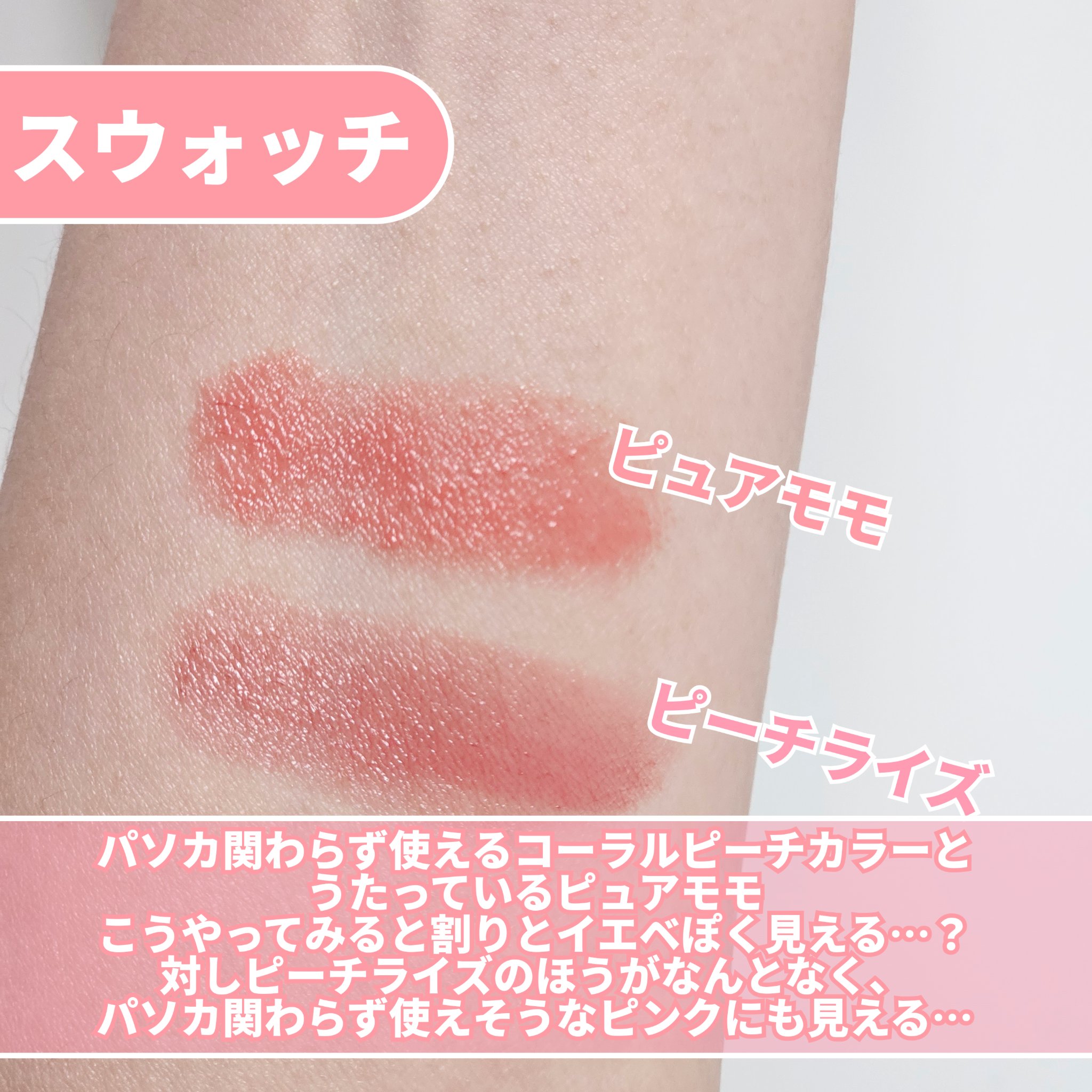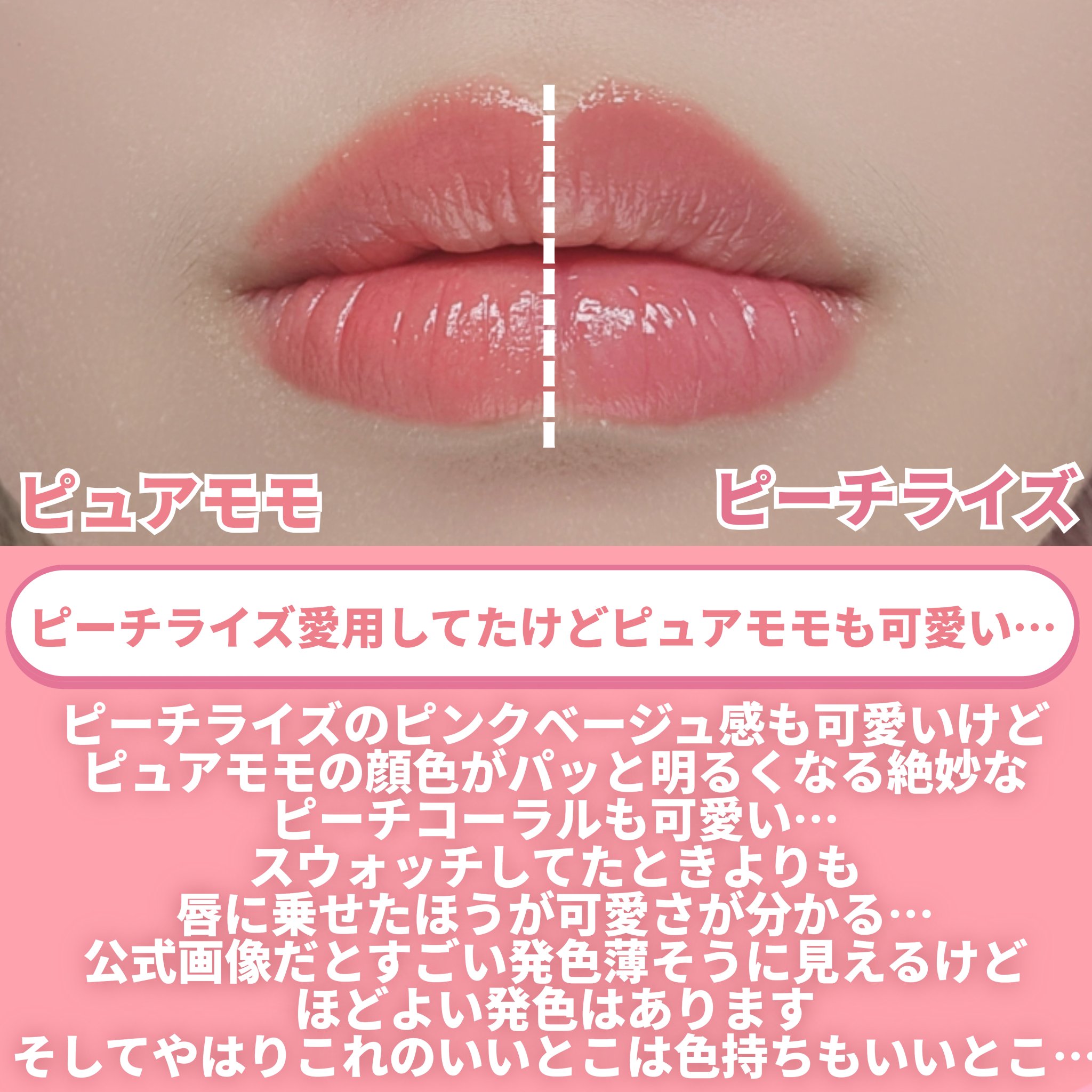 自然なヘルシーピーチカラーだから誰でも似合うと思います🤓 塗った瞬間から唇に優しく馴染みます! 乾燥知らずの保湿力で一日中唇が快適なのに、艶やかさは持続💖 グラデーションで自然に仕上がり、より立体的な唇に見えます。 チークで使っても可愛すぎるし、活用しやすいカラーなので