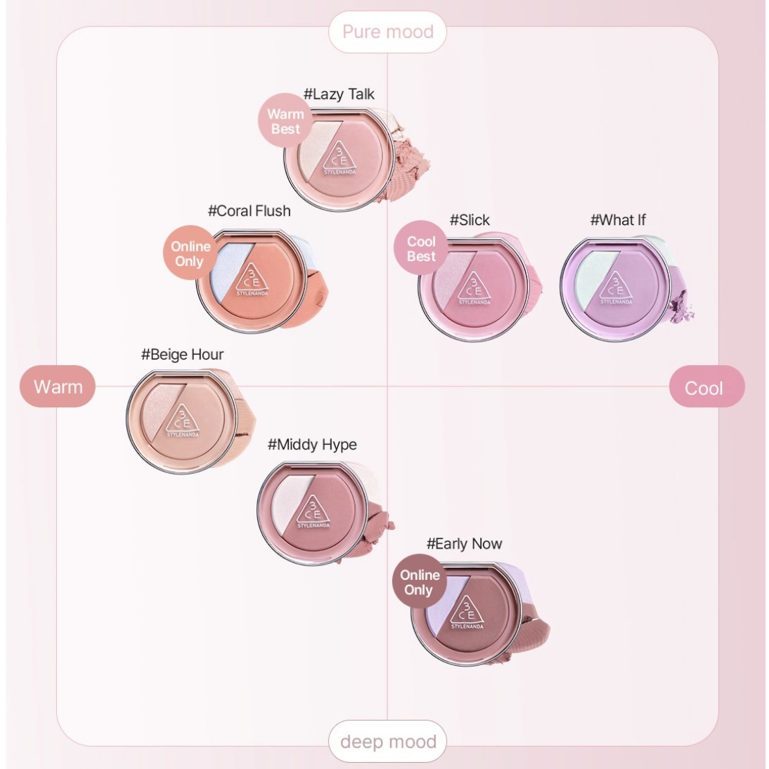 - ソウル発のクリエイティブメイクアップブランド「3CE」から、計算されたカラーコンビネーションで、自然な血色感とツヤを叶える「ブラッシュライター」全7色が登場。2025年3月4日(火)より店頭、3月14日(金)よりオンラインショップにて発売開始いたします。 ▮「盛れツヤほっぺ」と「じんわりナチュほっぺ」を演出 3CEならではのカラーへのこだわりを詰め込んだ新チーク&ハイライト「ブラッシュライター」。 色相環に基づいた絶妙な配色で、ハイライトとチークのベストバランスを実現します。 ・ コントラストカラー(全4色)で「盛れツヤほっぺ」: 色相環で反対色となるハイライトとチークを組み合わせることで、互いの色を引き立て合い、華やかな印象に。 透明感のあるハイライトが、血色感あふれるチークをより一層際立たせます。 ・ グラデーションカラー(全3色)で「じんわりナチュほっぺ」: 色相環で隣り合う色のハイライトとチークは、肌に自然に溶け込み、まるで“元から美人”のようなナチュラルな血色とツヤを与えます。