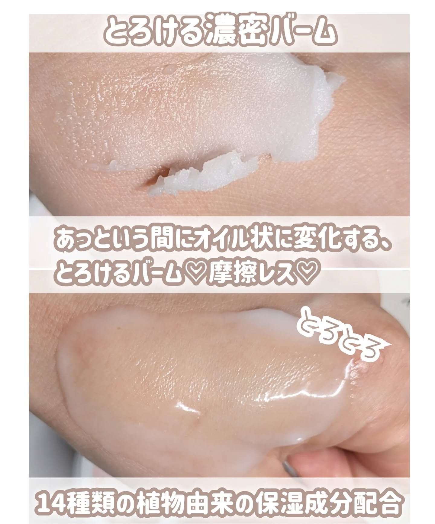 | スキンケアランキング第138位 | バームが取ってみるとじんわりととろけてきて、なめらかなテクスチャーに!馴染ませやすくて使いやすいです。 | 詳細を見る | |