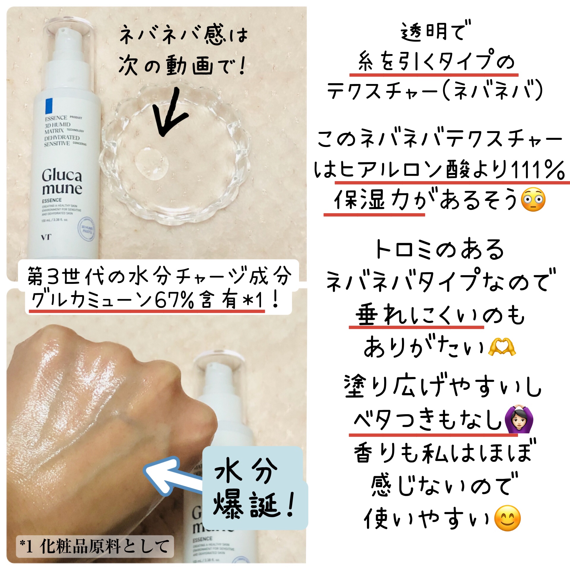 - β-グルカン※2由来のグルカミューン※1を67%※3も配合したエッセンス。 0歳から大人まで、どんな人にも使える1本!伸びがよく、しっかり密着する低刺激水分チャージエッセンスで乾燥肌のコンディションを整えます。 ※1 保湿成分 : シロキクラゲエキス、オクトキシグリセリン、β-グルカン/溶剤 : 水、プロパンジオール、1,2-ヘキサンジオール ※2 保湿成分 ※3 化粧品原料として