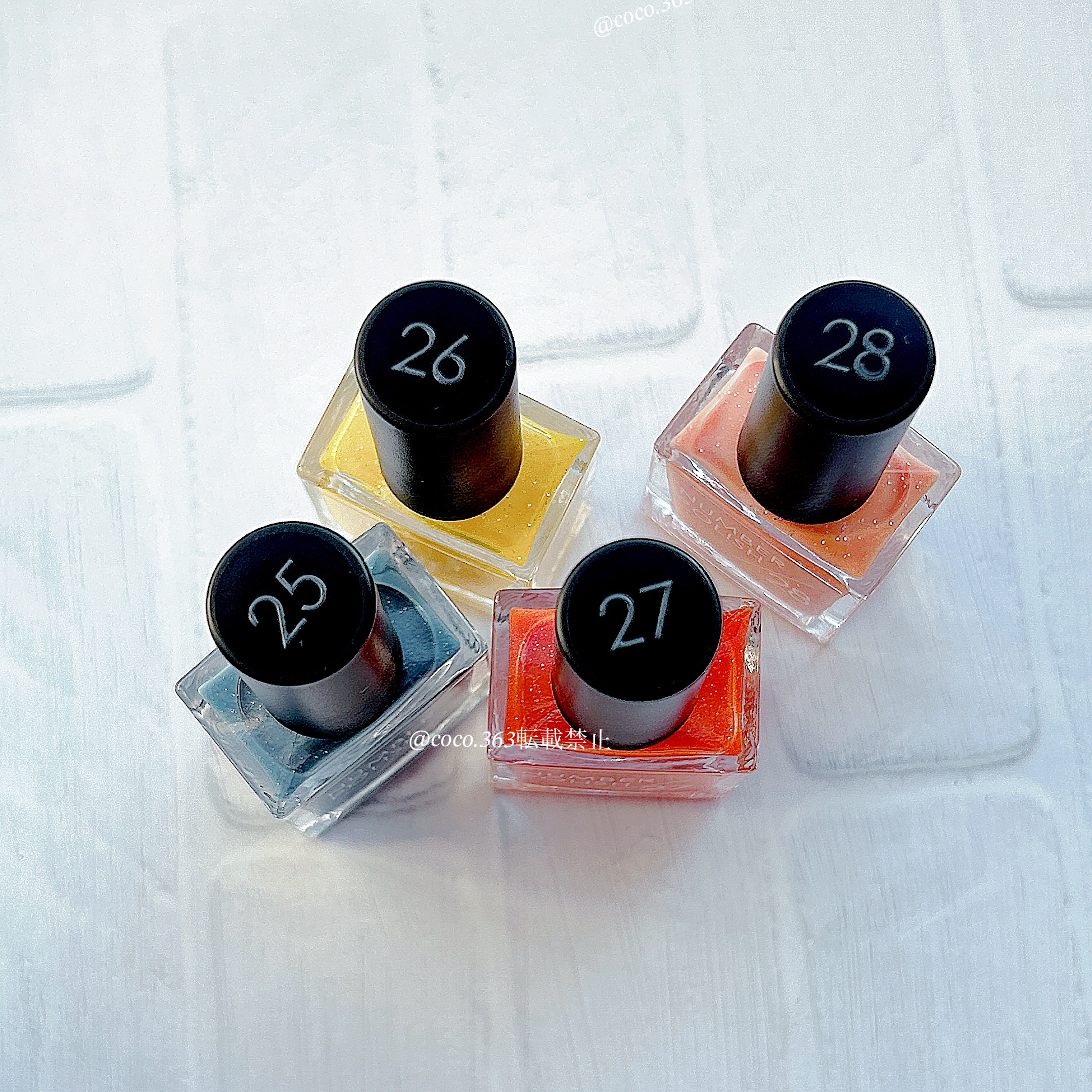 ビタミンカラーが可愛い🩵💛🧡▶︎NUMBERPOLISH☑︎25SEA-GLASSBLUE☑︎26LEMONSPLASH☑︎27FLAREORANGE☑︎28FLAMINGOPINKNUMBERPOLISHの新色は春夏にピッタリのラメ入りビタ...