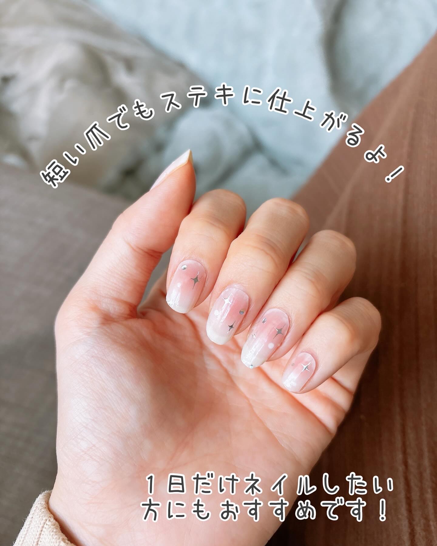 | ネイルランキング第179位 | 休日だけやイベントのときだけネイルしたい人にはおすすめです😊 オフもお風呂で剥がすだけなので簡単でした! | 詳細を見る | ||
