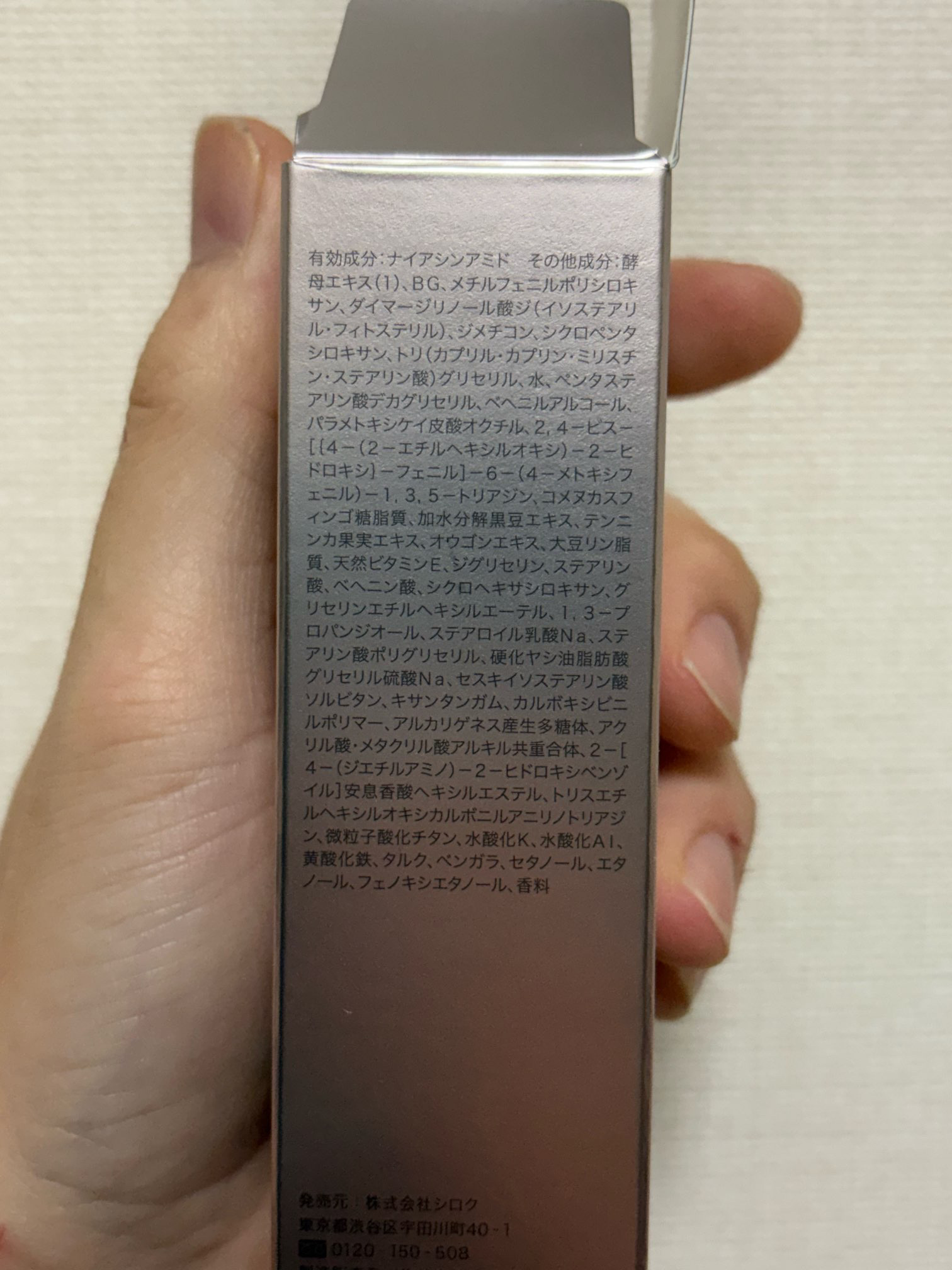 - <40g> 有効成分 ナイアシンアミド その他の成分 酵母エキス(1)、BG、メチルフェニルポリシロキサン、ダイマージリノール酸ジ(イソステアリル・フィトステリル)、ジメチコン、シクロペンタシロキサン、トリ(カプリル・カプリン・ミリスチン・ステアリン酸)グリセリル、水、ペンタステアリン酸デカグリセリル、ベヘニルアルコール、パラメトキシケイ皮酸オクチル、2,4-ビス-[{4-(2-エチルヘキシルオキシ)-2-ヒドロキシ}-フェニル]-6-(4-メトキシフェニル)-1,3,5-トリアジン、コメヌカスフィンゴ糖脂質、加水分解黒豆エキス、テンニンカ果実エキス、オウゴンエキス、大豆リン脂質、天然ビタミンE、ジグリセリン、ステアリン酸、ベヘニン酸、シクロヘキサシロキサン、グリセリンエチルヘキシルエーテル、1,3-プロパンジオール、ステアロイル乳酸Na、ステアリン酸ポリグリセリル、硬化ヤシ油脂肪酸グリセリル硫酸Na、セスキイソステアリン酸ソルビタン、キサンタンガム、カルボキシビニルポリマー、アルカリゲネス産生多糖体、アクリル酸・メタクリル酸アルキル共重合体、2-[4-(ジエチルアミノ)-2-ヒドロキシベンゾイル]安息香酸ヘキシルエステル、トリスエチルヘキシルオキシカルボニルアニリノトリアジン、微粒子酸化チタン、水酸化K、水酸化Al、黄酸化鉄、タルク、ベンガラ、セタノール、エタノール、フェノキシエタノール、香料