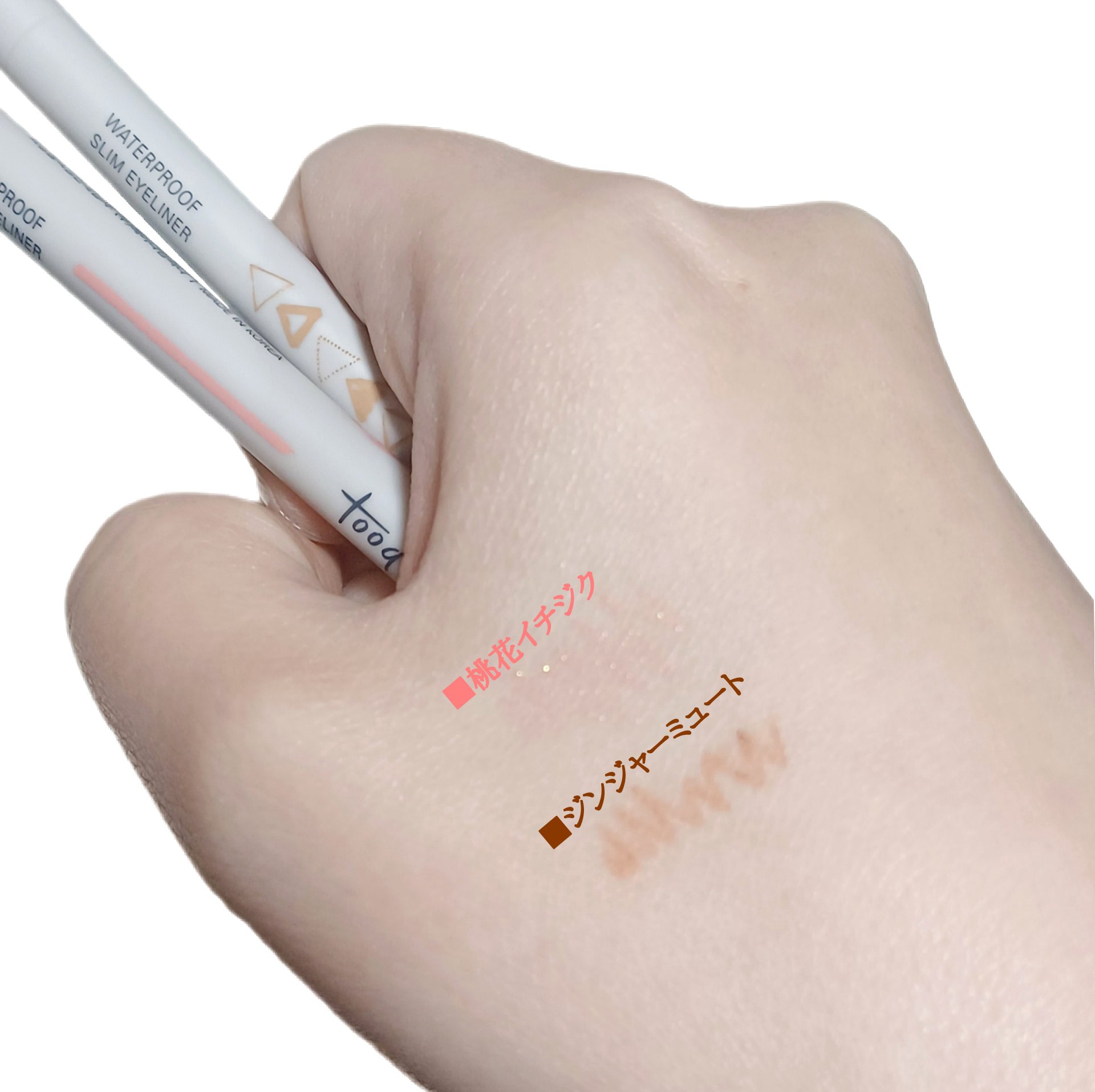 - トゥークならではの特別工法で作られたウォータープルーフ&オイルプルーフアイライナー。 2mmのスリムな厚さで繊細で完成度が高く、にじまない強力な固定力があります。 シャワー時にこすっても落ちないほど汗と油分に強いように製作してます。 カラーは全10種類で、奥ゆかしい目元表現と奥妙に見えるカラーで目元を自然に拡張してくれます。 そのうちシグネチャーカラーであるトゥークベージュは自然に目を拡張できるカラーで、粘膜に塗って切開メイクで使われます。 なめらかなつけ心地でヨレにくいです。 新カラーのトファサーモンは薄いピンクにアプリコットカラーが混ざって自然でふっくらした涙袋を作ってくれる魅力的な人気カラーです。 また、外部の空気が流入しない特許を取得したエアタイト容器で簡単に固まらず、初めて使用する時のような柔らかいつけ心地を維持してくれます。
