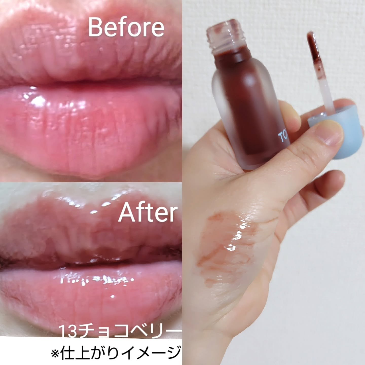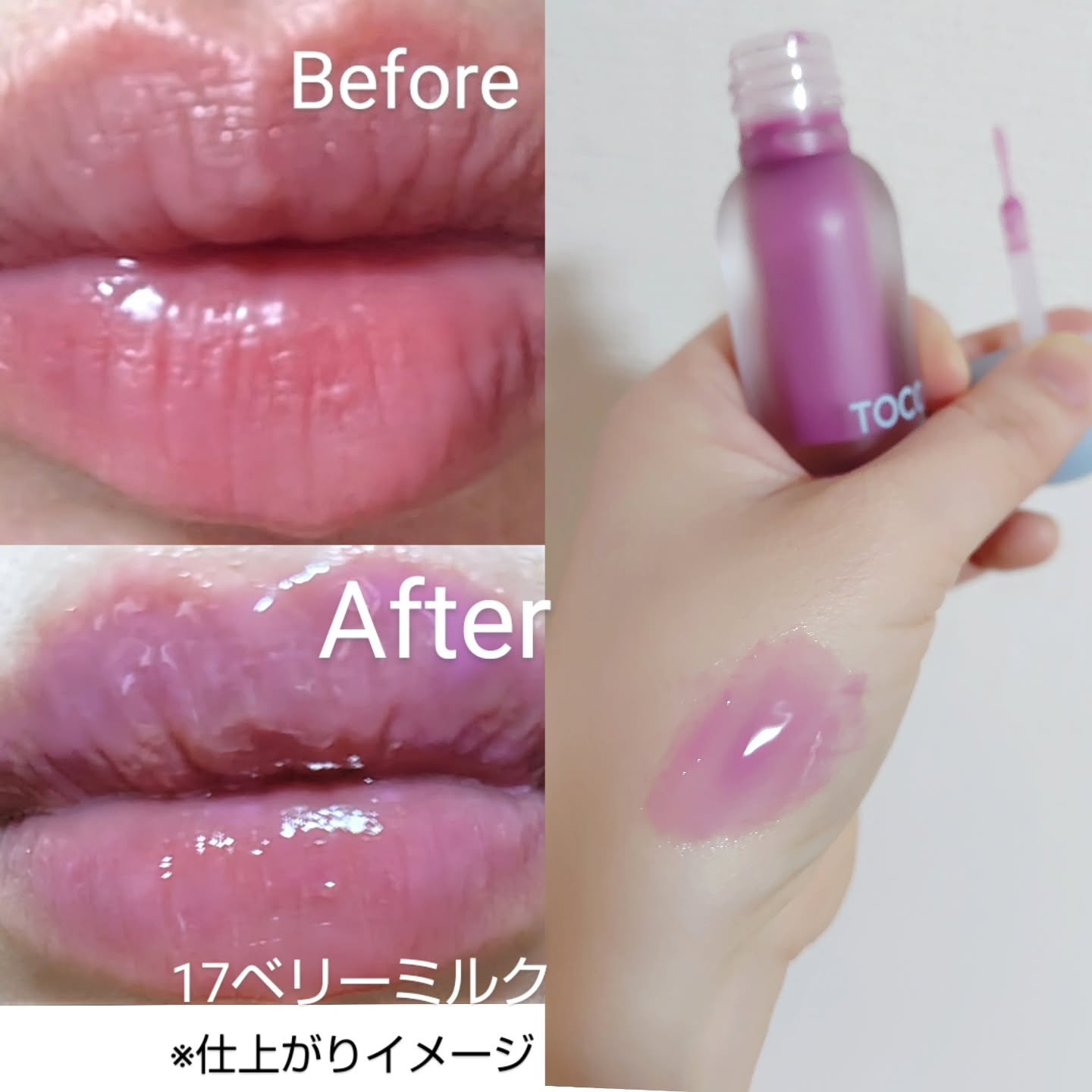 どの色味もとても艶が出て可愛くて、大好きです! ジューシーベリー プランピング リップオイル ★ 左から 11ハニーレモン 12チェリーエード 13チョコベリー 14ピーチネクター 15コーラルソーダ 16アップルマンゴー 17ベリーミルク 18コージーピンク ★