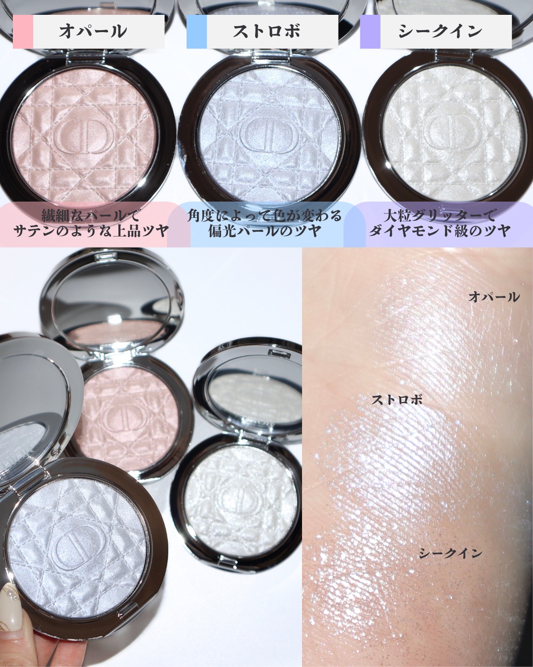 コメント失礼します!こちらのハイライトのブルーストロボすごく気になってました🩵 一つお聞きしたいのですが、 ・ディオールの「05 ブルーストロボ」 ・Lakaのドリームビームハイライター「03 ウォータービーム」 ・キャンメイクのむにゅっとハイライター「04 ブルートパーズ」 は一見するとカラーが似てる感じなのですが、つけたら全然違いますか?どのブルーハイライトを買おうかすごく迷っていて…もしよければ教えて頂けるととても嬉しく思います🥰💦