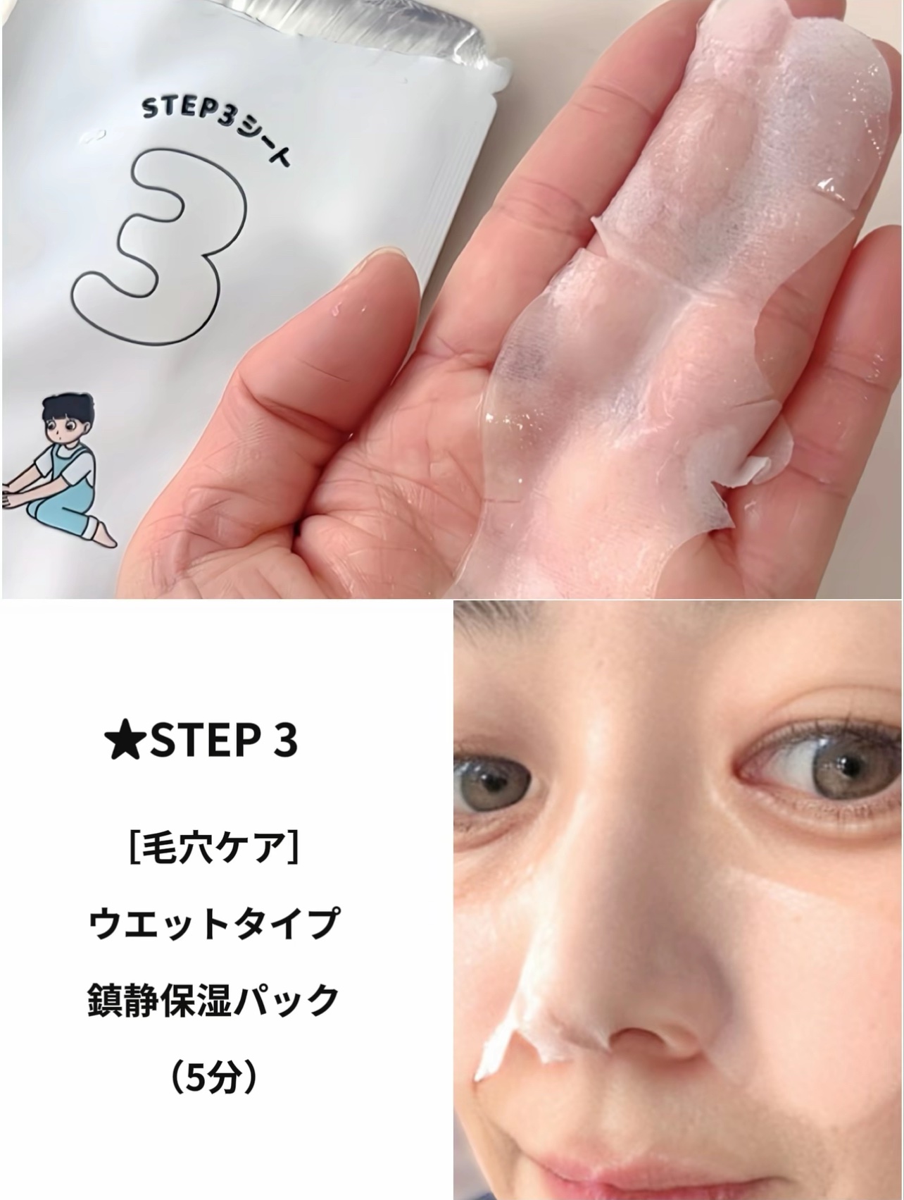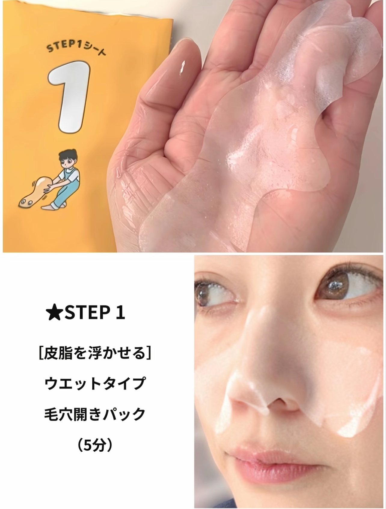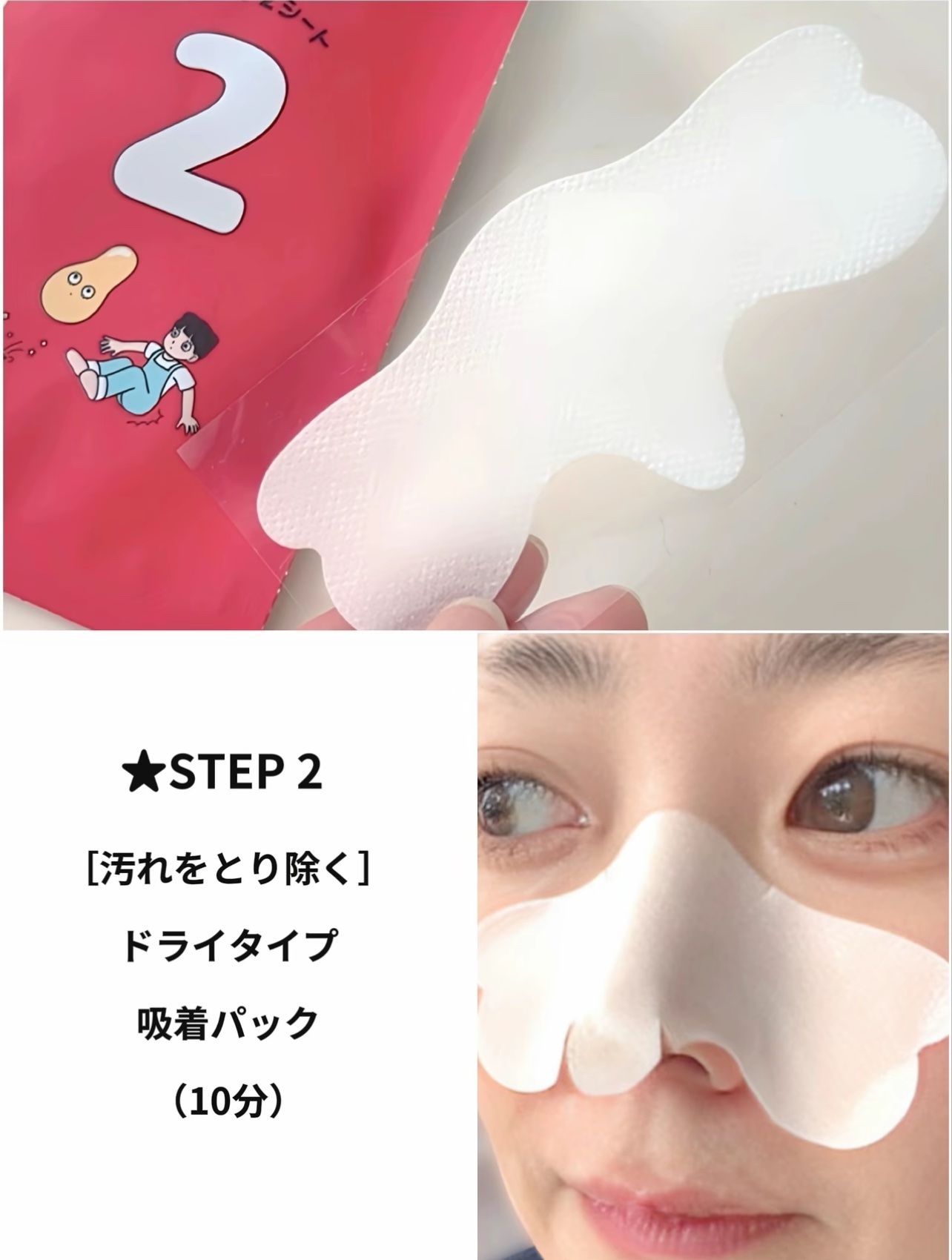 - ”本気の毛穴ケア”をコンセプトに、美容大国・韓国では主流といわれる3STEP方式を採用。 STEP1:皮脂をキレイに、STEP2:汚れを取る、STEP3:毛穴ケア の各STEPを踏むことで、こだわりの使用感を提供いたします。 また、鼻の隅々までいきわたるシートデザインや、吸着力(*1)、そしてパックをはがした後の肌の引き締めといたわり(*2)にこだわりを詰め、これまで100種類以上の毛穴関連商品を試しSNS上でレビューしてきた「やみちゃん」だからこそ開発できた商品となっています。 *1:皮脂軟化成分が古い角質によるブラックヘッドを軟化させ、しっかりと吸着できるようにします。 *2:毛穴ケア(肌引き締め&うるおい)成分配合で、パックをはがしたあとの肌を引き締め、毛穴を目立ちにくくします。また、パック後のお肌を保湿し優しい使い心地でいたわります。 使用上の注意: ・本来の用途意外に使用しないでください。 ・お肌に異常が生じていないかよく注意して使用してください。 ・傷やはれもの、しっしん等、異常のある部位にはお使いにならないでください。 化粧品がお肌に合わないとき即ち次のような場合には、使用を中止してください。 そのまま使用を続けますと、症状を悪化させることがありますので、皮ふ科専門医等にご相談されることをおすすめします。 (1)使用中、赤味、はれ、かゆみ、刺激、色抜け(白斑等)や黒ずみ等の異常があらわれた場合 (2)使用したお肌に、直射日光があたって(1)のような異常があらわれた場合・目に入った時は、直ちに洗い流してください。 保管及び取り扱い時の注意事項: ・乳幼児の手の届かない所に保管してください。 ・直射日光の当たる場所、極端な高温、低温の場所を避けて保管してください。 ・一度使用したマスクの再使用は控えてください。
