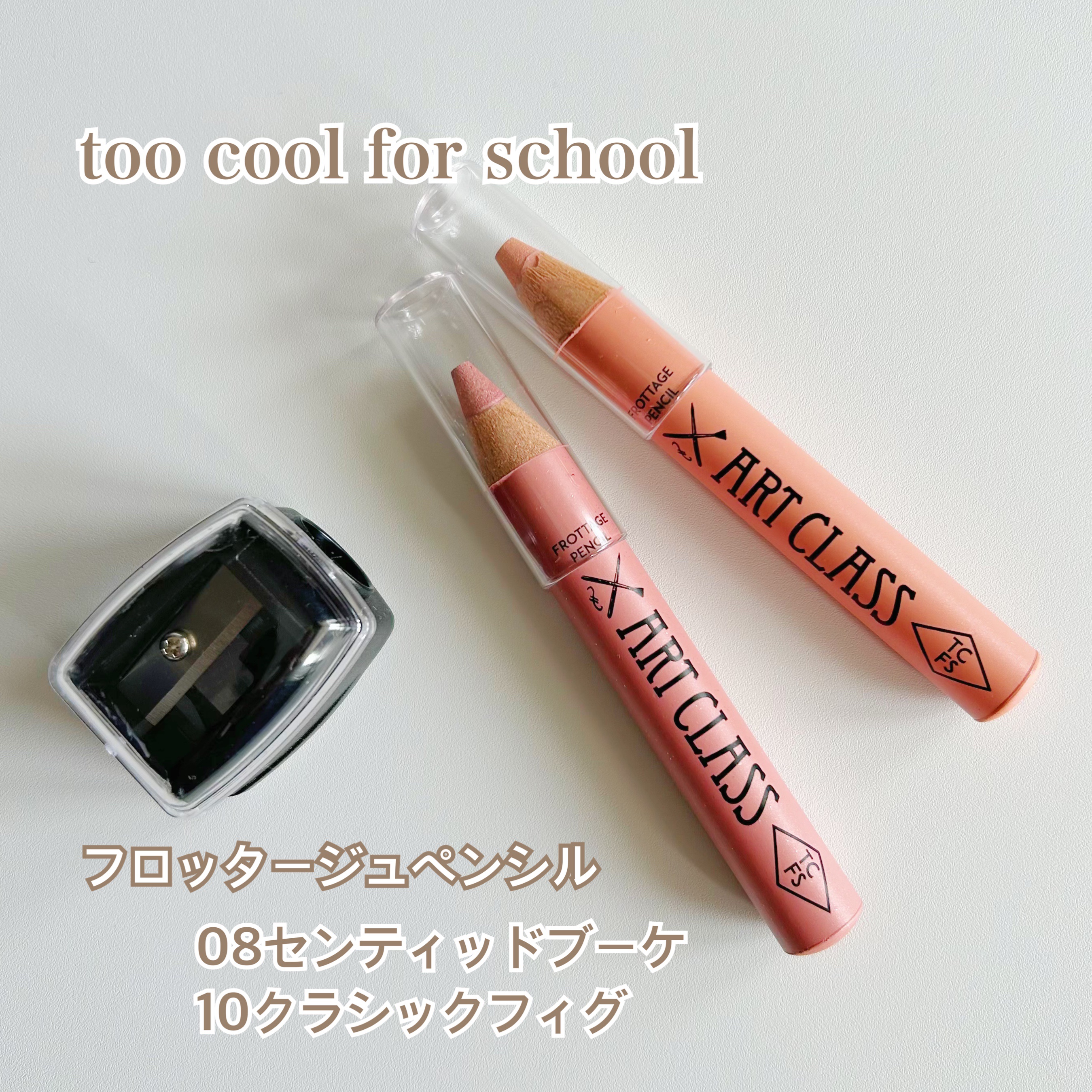 韓国メイクサロン御用達 too cool for school🩷フロッタージュペンシル 見た目めっちゃ硬そうなのに、ふわっとサラサラでスルスルな描き心地にびっくり! 涙袋、チーク、リップライナーなどに使えるよ🌼 #16 Milky Rose 泣きはらしたようなローズカラー #17 Taro Chiffon 深みのあるモーブカラー