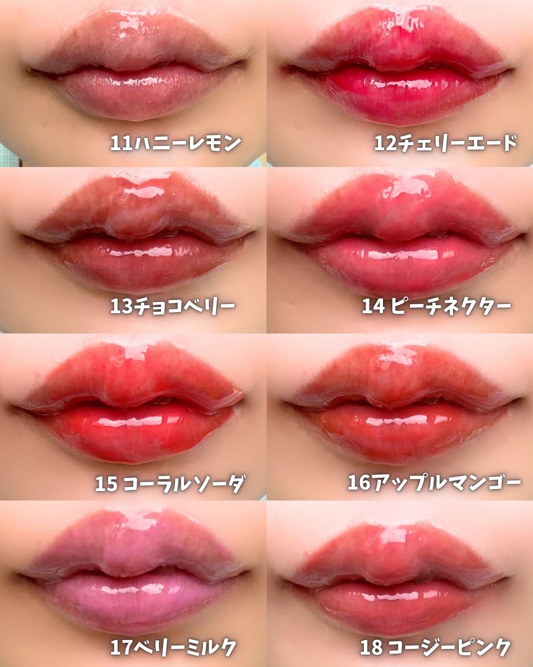 高保湿ケア、唇のしわをカバーしてくれるボリューム感リップオイル 日本限定の14 ピーチネクターと16 アップルマンゴーもデイリー使いしやすいカラーで可愛い。 ぷっくりつやんつやんに。シリコンチップなので拭き取りしやすいです。