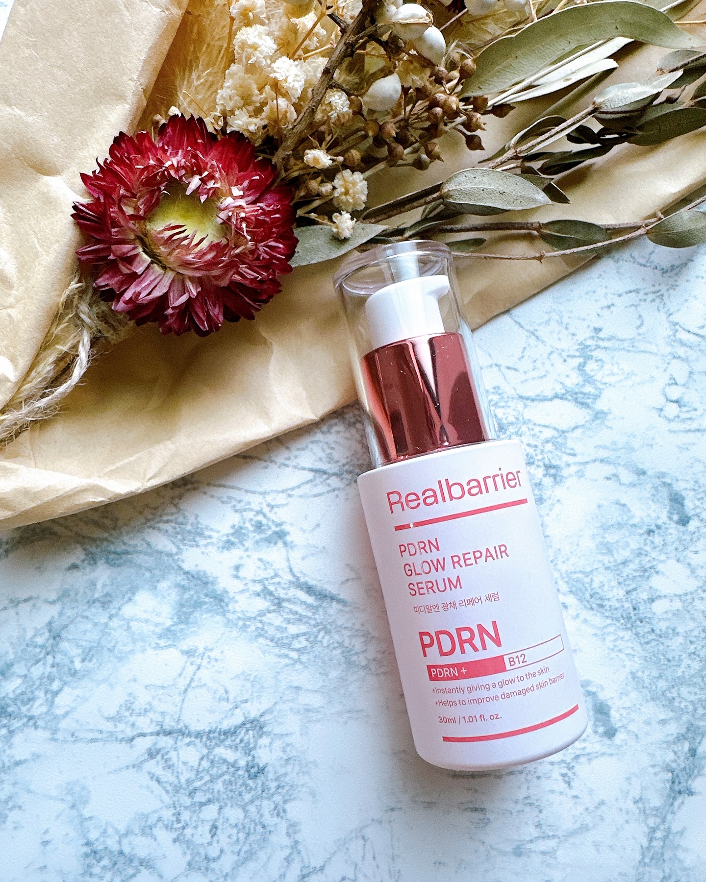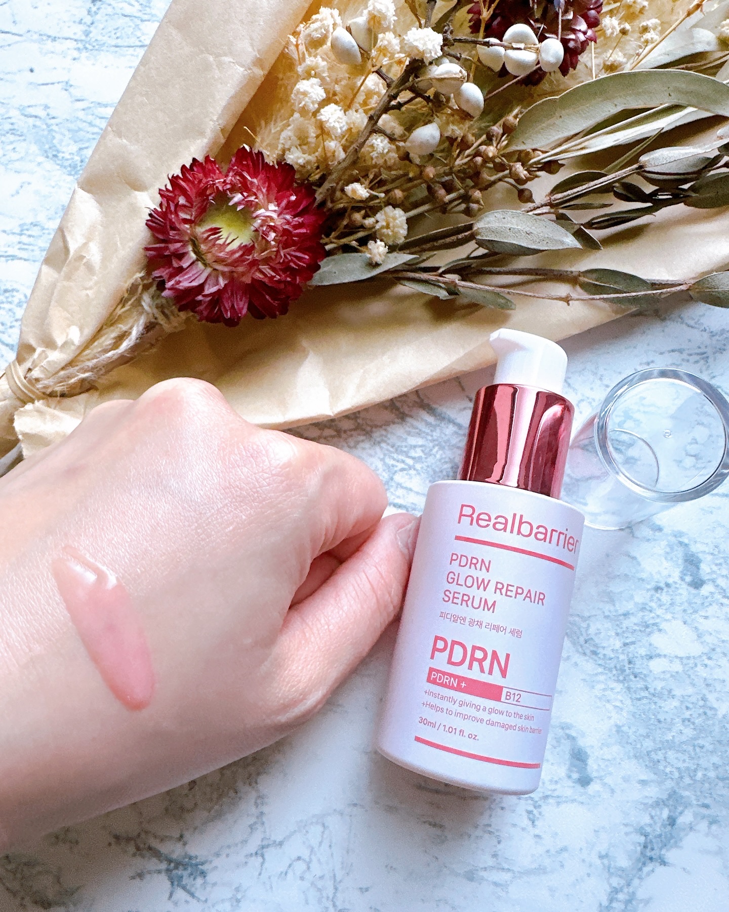 バラ由来🌹RealBarrier PDRNグロウリペアセラム✨2月に新しく新発売したばかりのPDRN配合美容液だよ❣️バラ細胞から抽出したPDRNと肌乳酸菌由来のラクトバチルス細胞外小胞成分を配合してるの。サーモンでなくバラからっ...