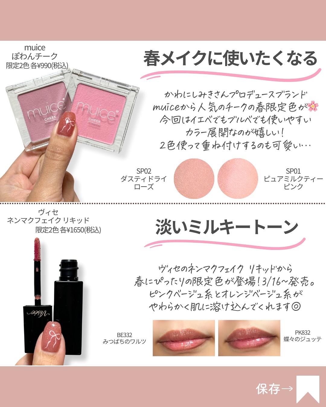 発売まで先なので保存推奨📎📎こんばんは!ViPlus編集部です💎✨名品揃いのSUQQUから新作リップが登場します!1/26発売。とろけるようなテクスチャーでまろやかな塗り心地のリップ。むっちりとした仕上がりで、魅力的な唇に仕上げてくれます🥺💓...