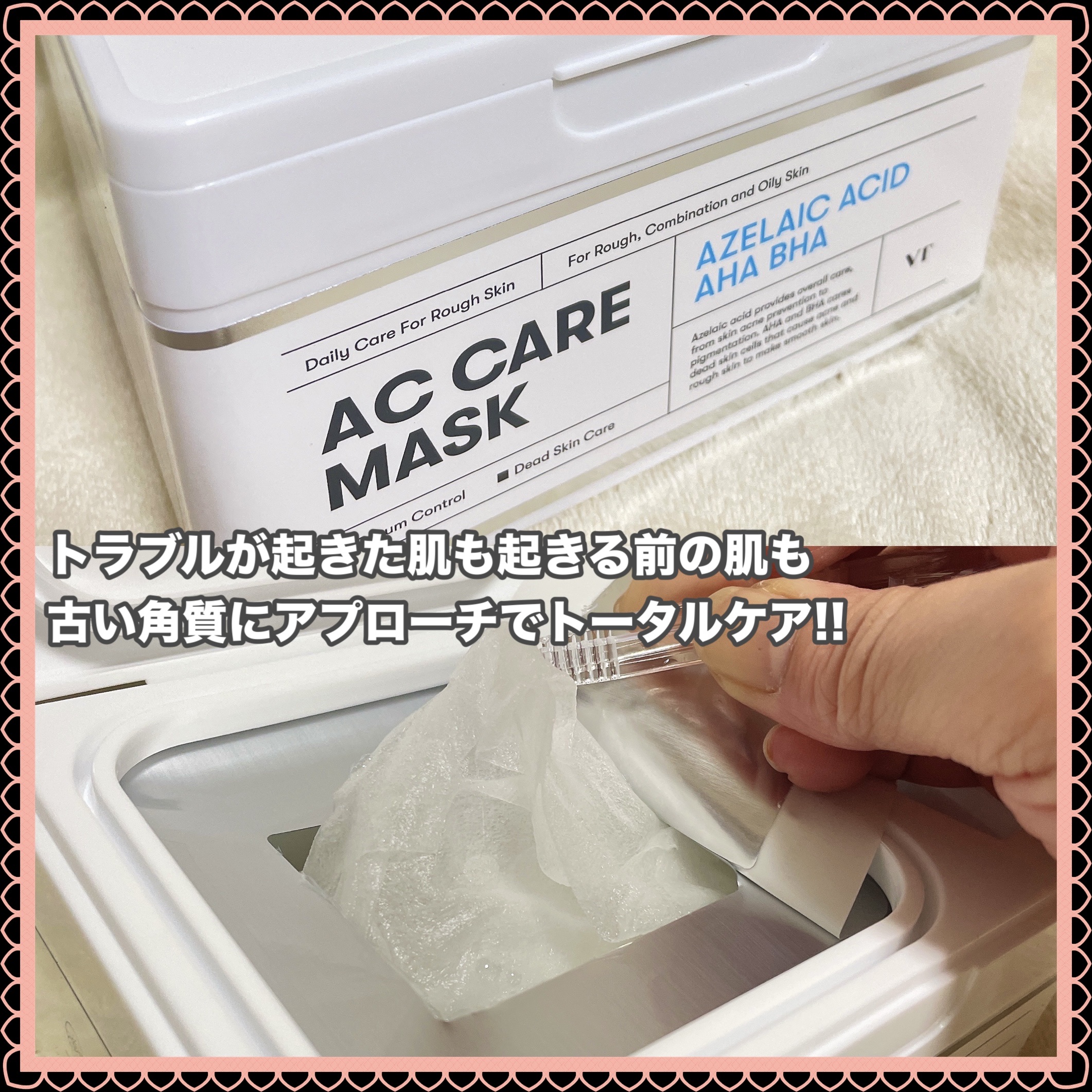 メガ割限定でめちゃくちゃお得にGETできる神セットをご紹介させてください😽♥️ VTのアゼライン酸は、古い角質を除去、色素沈着改善効果でトラブル予防! 薄いビニールのようなシートで、パックの上から付けるだけ!