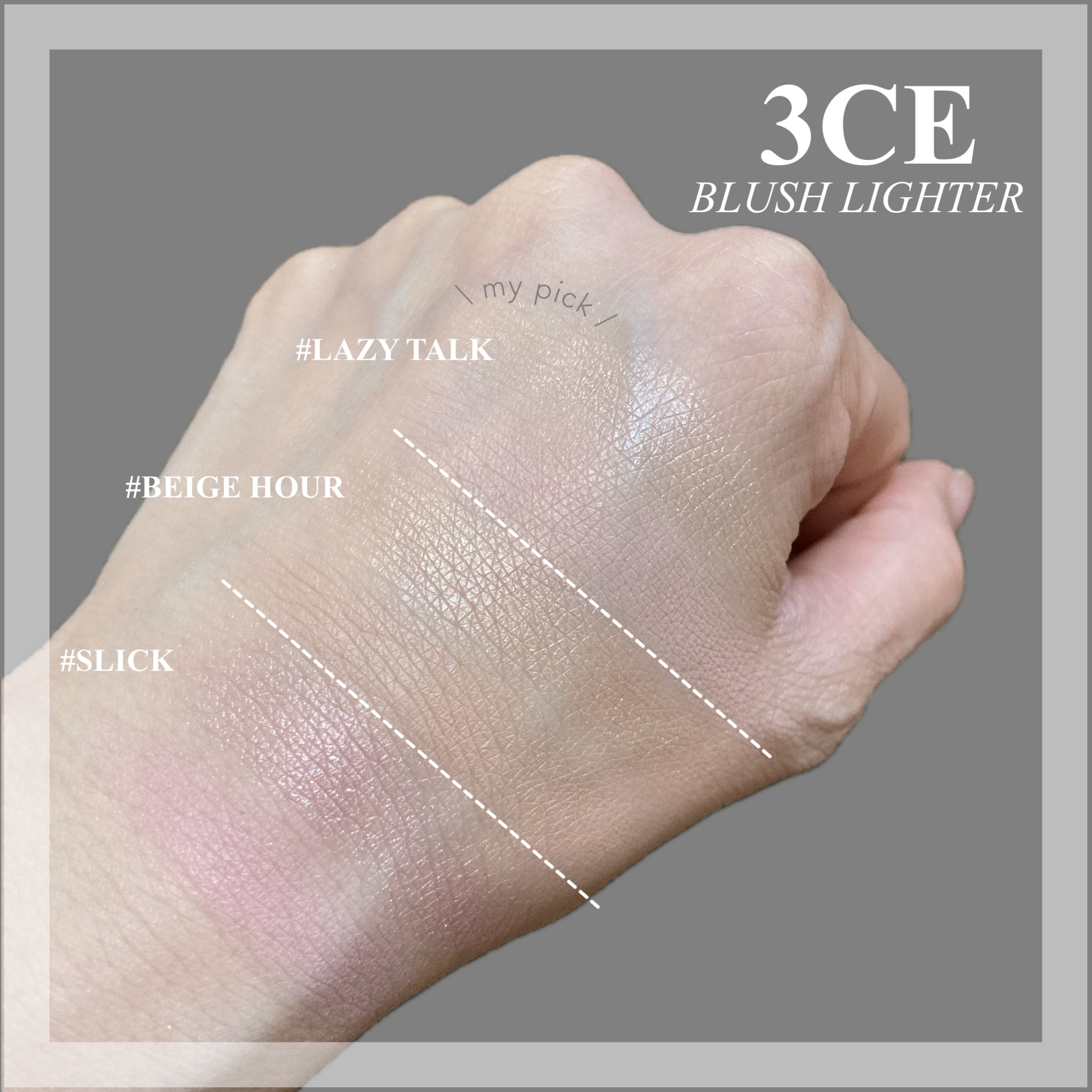 3CEからチークとハイライトが1つになった【 ブラッシュライター 】が新登場! 計算しつくされた配色のツヤっときらめくハイライト&ふんわり発色のヴェールチークで自然な血色感とツヤを叶えてくれるよ🪄 色相環を元に計算しつくされた色の組み合わせだから、簡単にトレンド感あるメイクができちゃう✨
