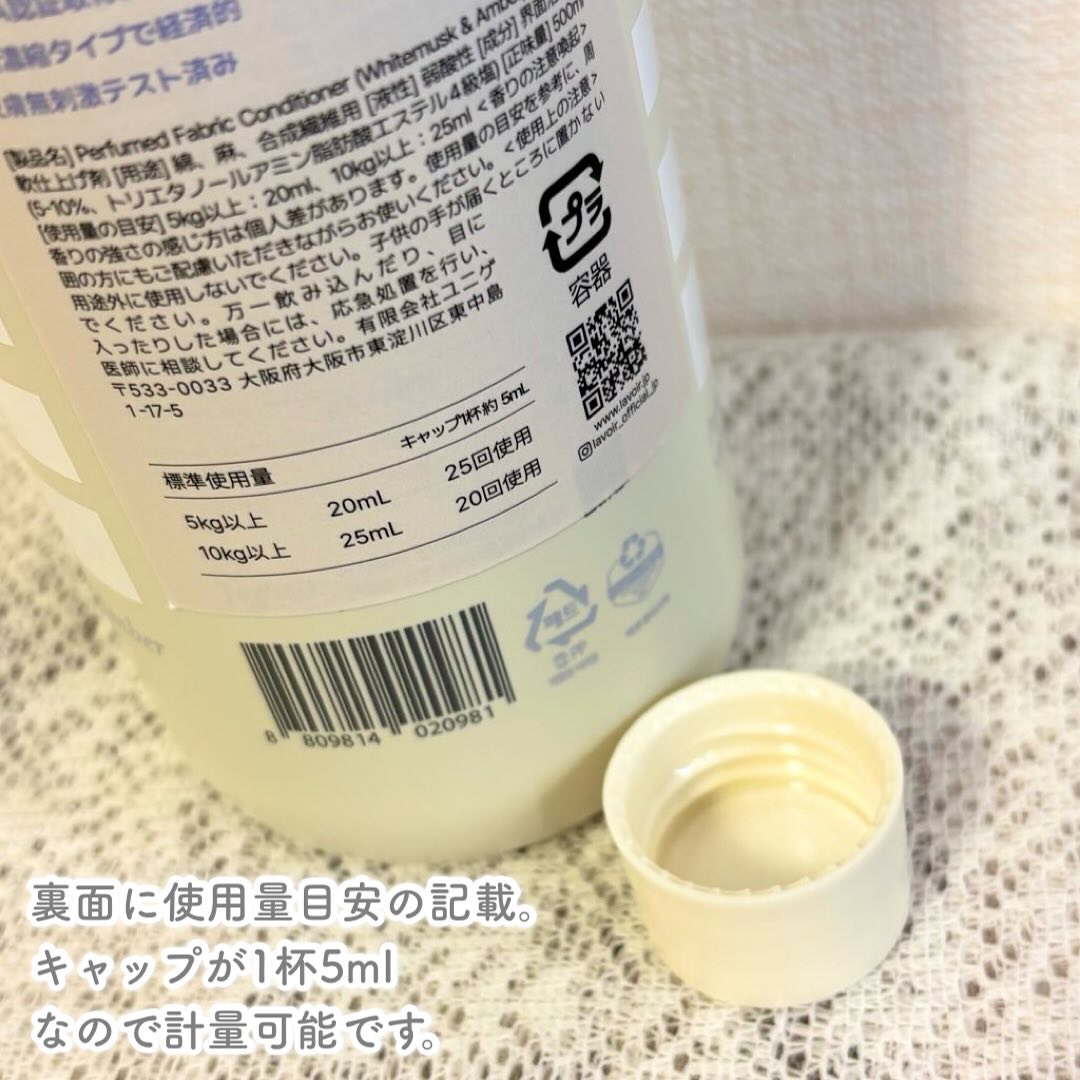 商品詳細情報LAVOIR パフュームヴィーガン柔軟剤 ホワイトムスク&アンバー