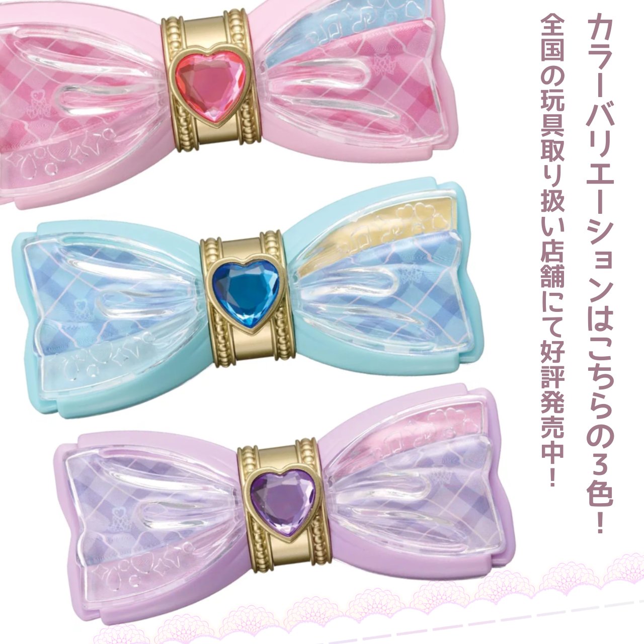 キラキラのリボンのデザイン、ハート型のリップ、リップの繊細なラメ感、どれも本当に可愛い! 優しい色づきとじゅわっと感も可愛いです。 紹介したのはキミとアイドルプリキュア♪ Pretty Holic プリティアップリップ キュアキュンキュン、キュアウインクverです。