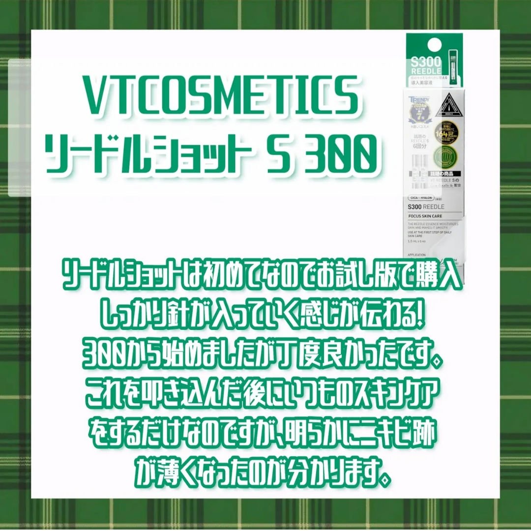 。。。𓅼頑張ってみたけど、ダメだった。。。𓅼VT リードルショット300リードルS100を導入液として使っていた時はチクチク感をそれほど感じず、気に入って使っていたの。肌のキメが整ってきたし、次に使うスキンケアが馴染みやすかったので、ランクを...
