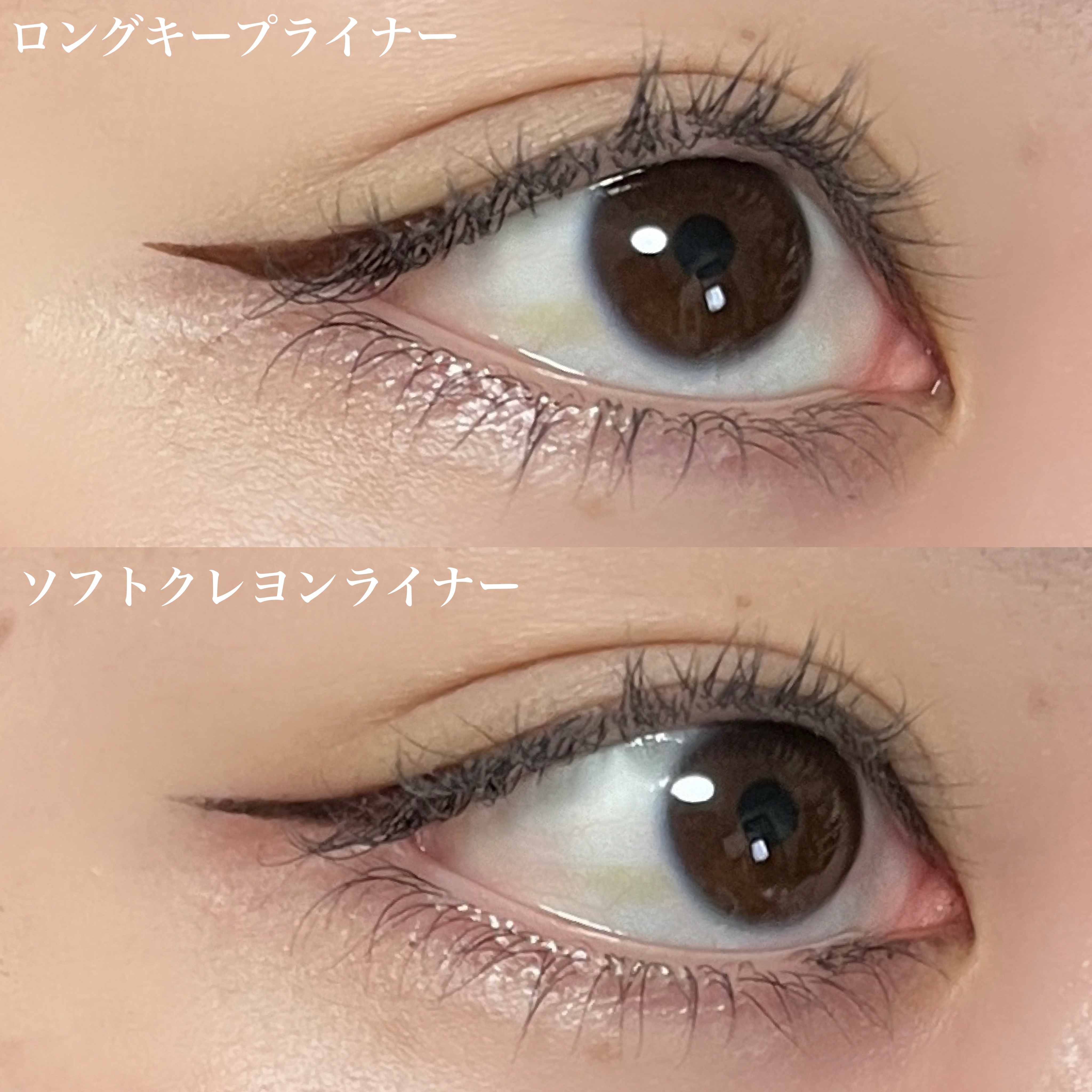 汗・水・涙・皮脂に強いウォータープルーフ処方 擦れに強いスマッジプルーフ処方 柔らかまろみブラウン。どんな色のアイシャドウとも合わせやすいカラーかなと思いました。 目元際立つ濃密ブラック。肌辺りが優しくスルスルラインが引けました。