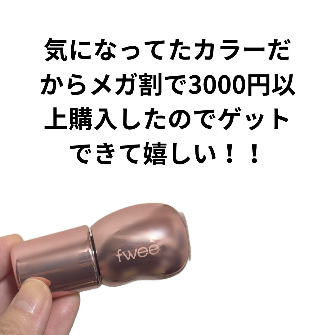 fweeの新色「ピーチ」💗 メガ割でfweeアイテム3000円以上購入者限定(数量限定)でピーチ70%が貰えるとの情報を知り、、、もちろんゲットしちゃいました~!!✨ 一番似てるバニラよりピンク感強めのコーラルピンクカラー💗 イエベ、ブルベ関係なく使いやすいピンクかな?という印象。 とにかく色味が天才的!! 本当にfweeはめちゃくちゃセンスある。(誰)