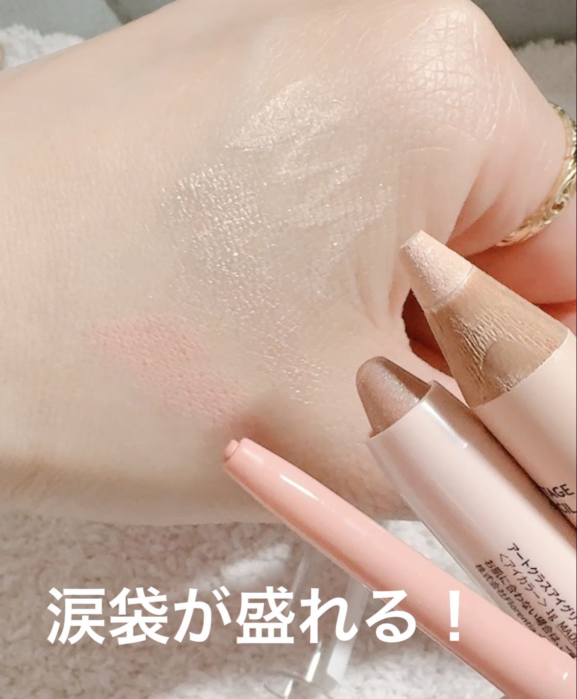 ペンシルタイプのアイシャドウ❤️❤️ 付けたては馴染ませたり可能で時間が経つとヨレない‼️落ちない‼️とっても良い😆 カラーも使いやすいカラーばかりで涙袋に使っても夕方までしっかりキレイ😌滲まないから凄い良い👍👍 ペンシルだけど柔らかく目に負担なくスルスルつけられる☺️