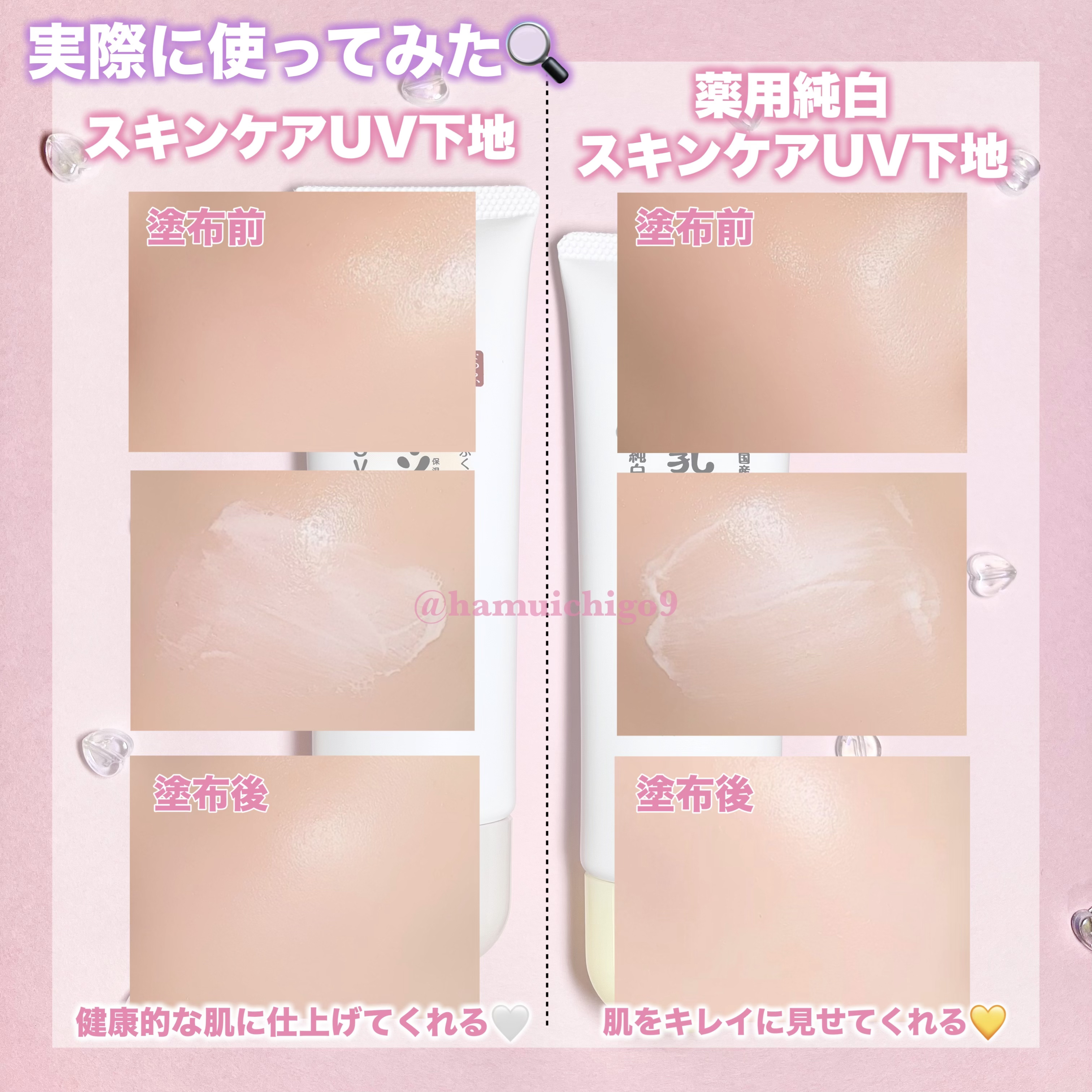 大人気UV下地がリニューアル✨ 🧡スキンケアUV下地NC (保湿ケア) ☑︎ 低刺激設計 ☑ SPF45,PA+++ シミ・肌荒れを防ぎながら美白ケア! カラーはクリアホワイトで、メイクアップ効果により透明感UPさせ肌をキレイに見せてくれる✨ 美容液成分がたっぷり含まれているのに 値段も変わらず、ドラストで簡単に手に入るのでみなさまぜひ手に取ってみてね🫶