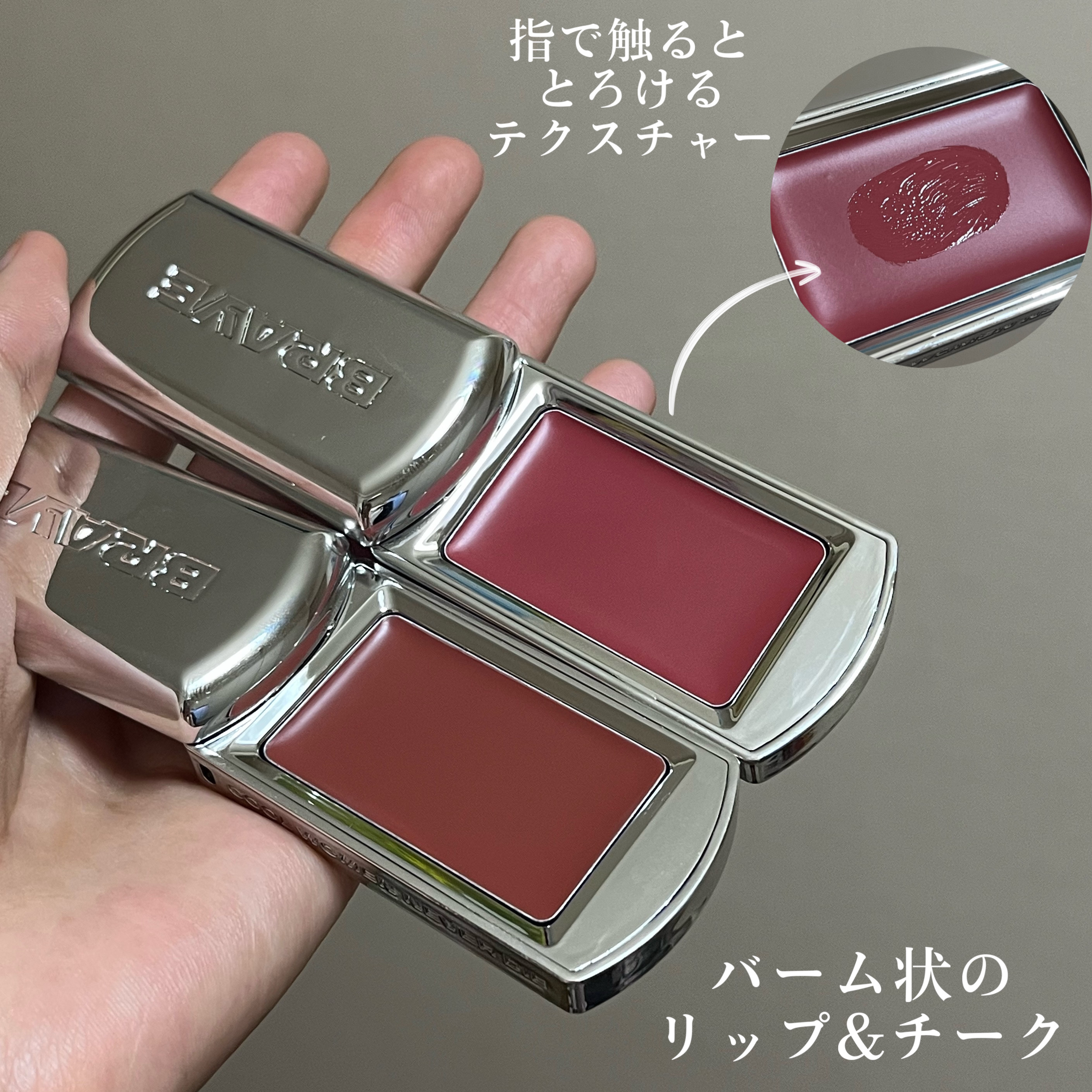 - スライディング容器に入れたBRAYEだけの感性を込めたリップ&チーク。 全10色展開。リンゴ種子オイルが含有されており、リップコンディショニングケアまで。 スッと体温に溶けるバームタイプで高発色で密着力の高いテクスチャー。 専用のストラップとブラシで自分なりの個性あふれる「ユニークなカスタムコスメ」としても、ファッションアイテムとしても大活躍できます。