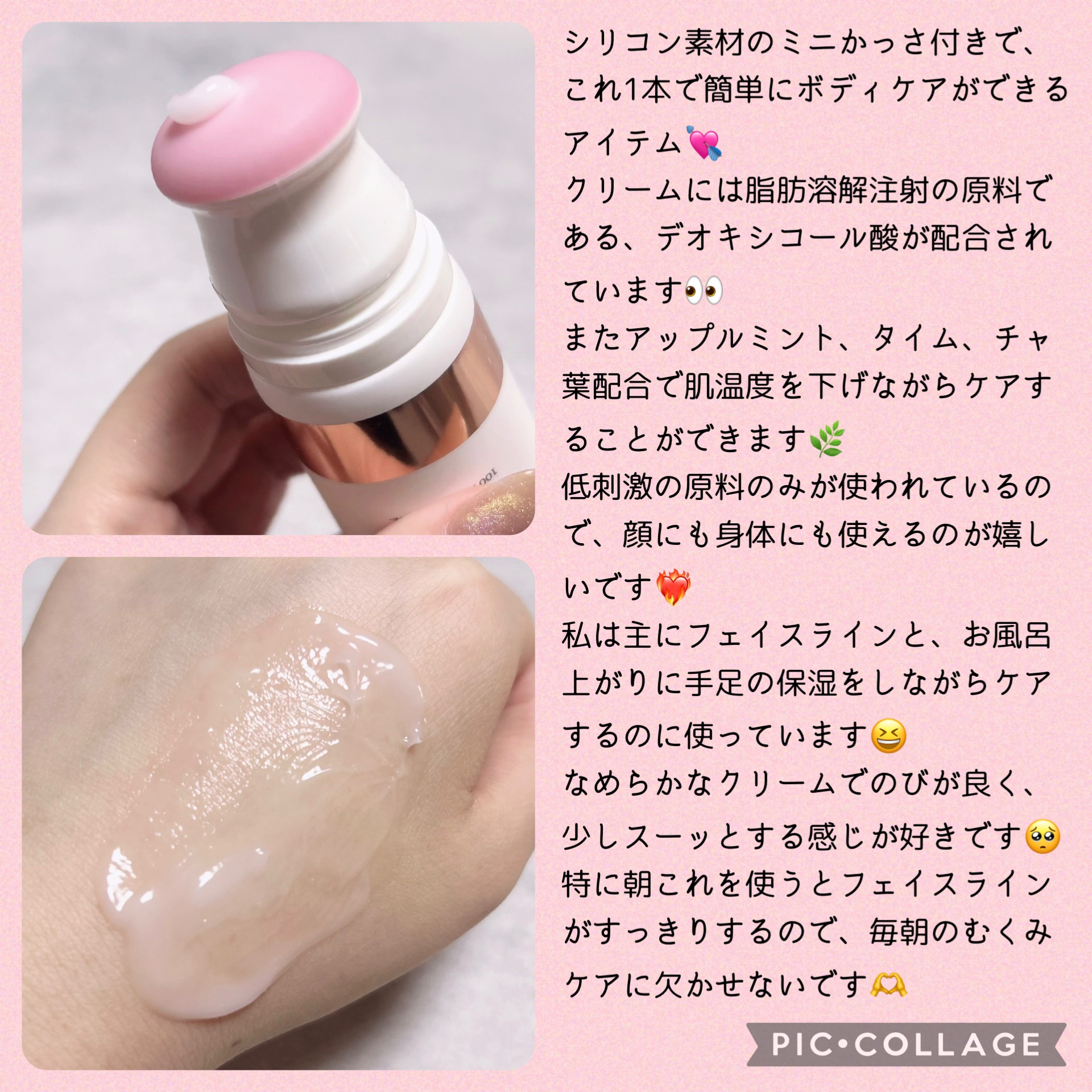 これ一本でフェイスもボディもケアできるかっさ付きクリーム!脂肪分解注射の成分(デオキシコール酸)配合、8種類の発酵原料&オーガニック原料が肌の角質層まで浸透! 3種のクーリングハーブで鎮静とリラックス効果も🌿 クリームが柔らかめで大容量入っているので全身にも使いやすいよ♪