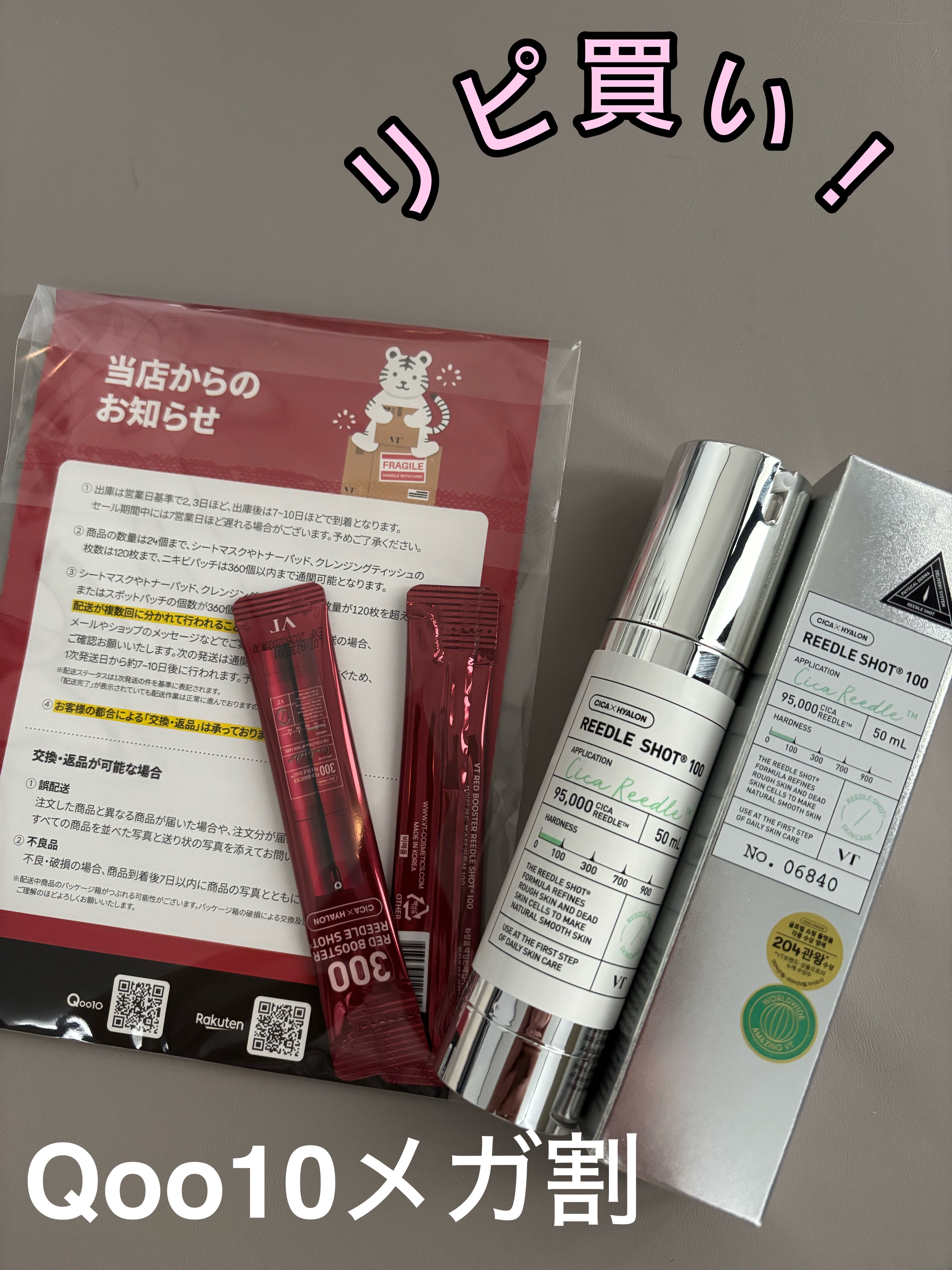 何回もリピ買いしているVTのリードルショットを購入😍🎶 こちらは2本選べるので100と300にしました(◡̈)/♥︎ VTのマスクともう10回以上リピしていて最近はほんとにいっぱい種類があるので肌質やその日気分に合わせて使ってます!! 美容液のおまけがこれおまけ?ってぐらい大きのでびっくりしました(*ö*)