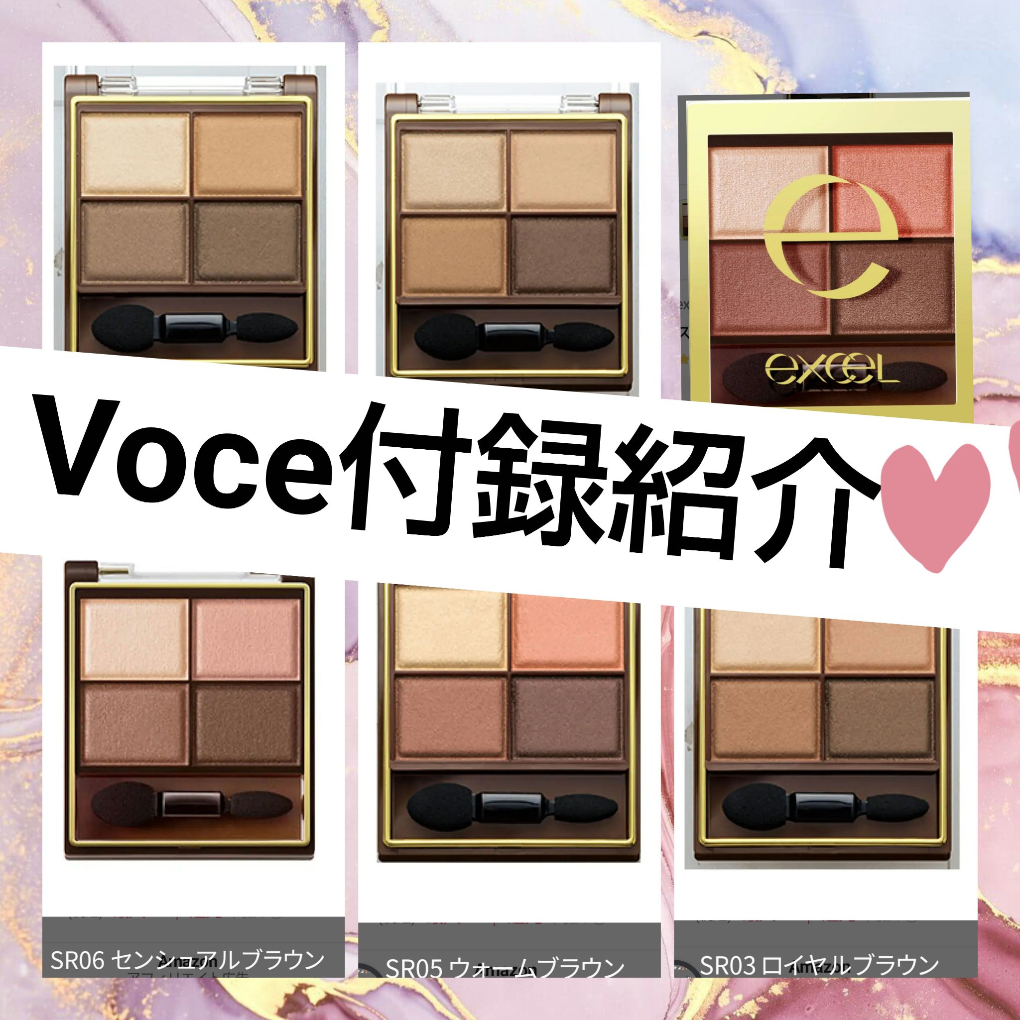 VOCE5月号購入しました♡なんとexcelスキニーリッチシャドウ現品付録!!980円の雑誌に1650円のアイシャドウが付録とは😳SR01ベージュブラウンSR02リアルブラウンSR03ロイヤルブラウンSR05ウォームブラウンSR06セン...