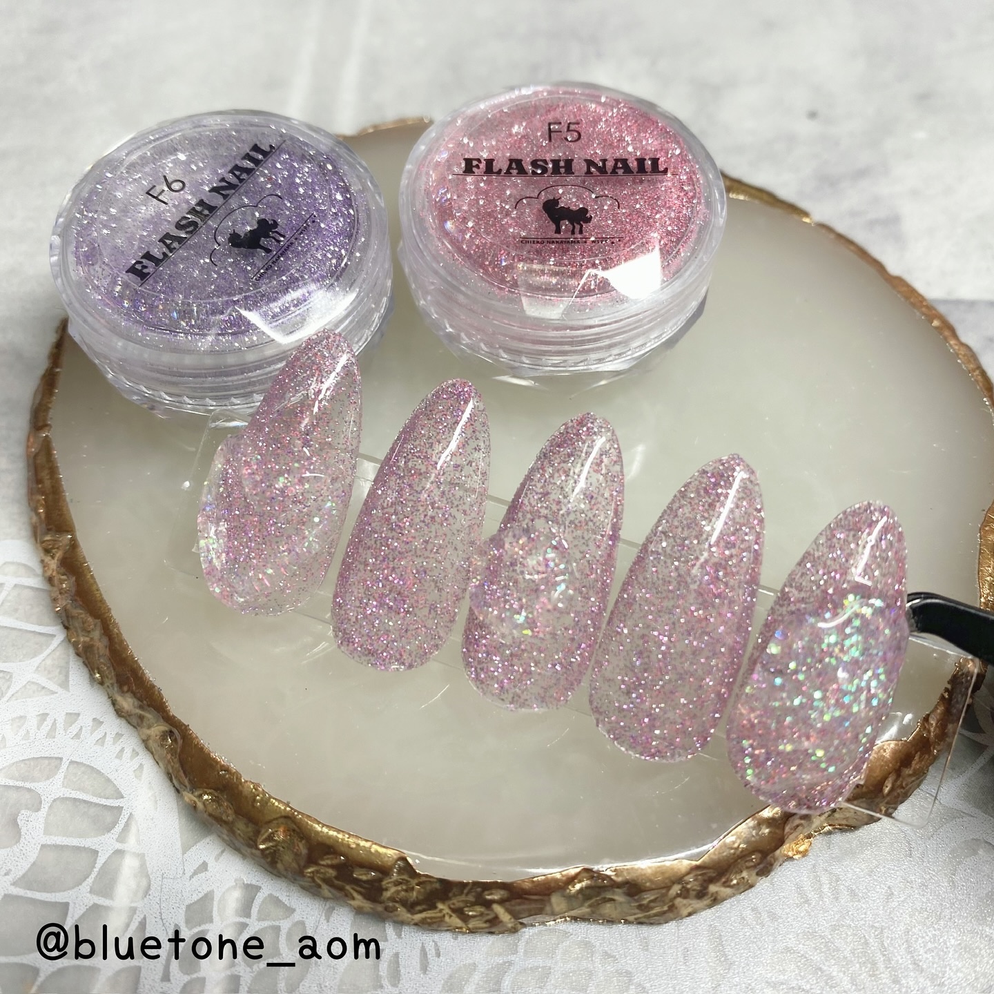 ベースカラーを塗ったらノンワイプトップを塗って硬化します。 クリア→ミラー感はあるけど、発色はそこまで濃くないのでガッツリシルバーを求めてる人は物足りないかも🤔 ホワイト→キレイにシルバーになりました! ミルキーホワイト→シャンパンゴールドみたいな落ち着いたゴールドっぽくなりました😳 ブラック→キレイにシルバーに!やっぱりブラックとシルバーは映えますね🤝ギラギラです! パウダーの粒子はちょっと大きめなのでちょっと不安でしたが擦ってみるとキレイにミラーになりました! ベースカラーで見え方も変わるので色々試しても面白いかもです🥰
