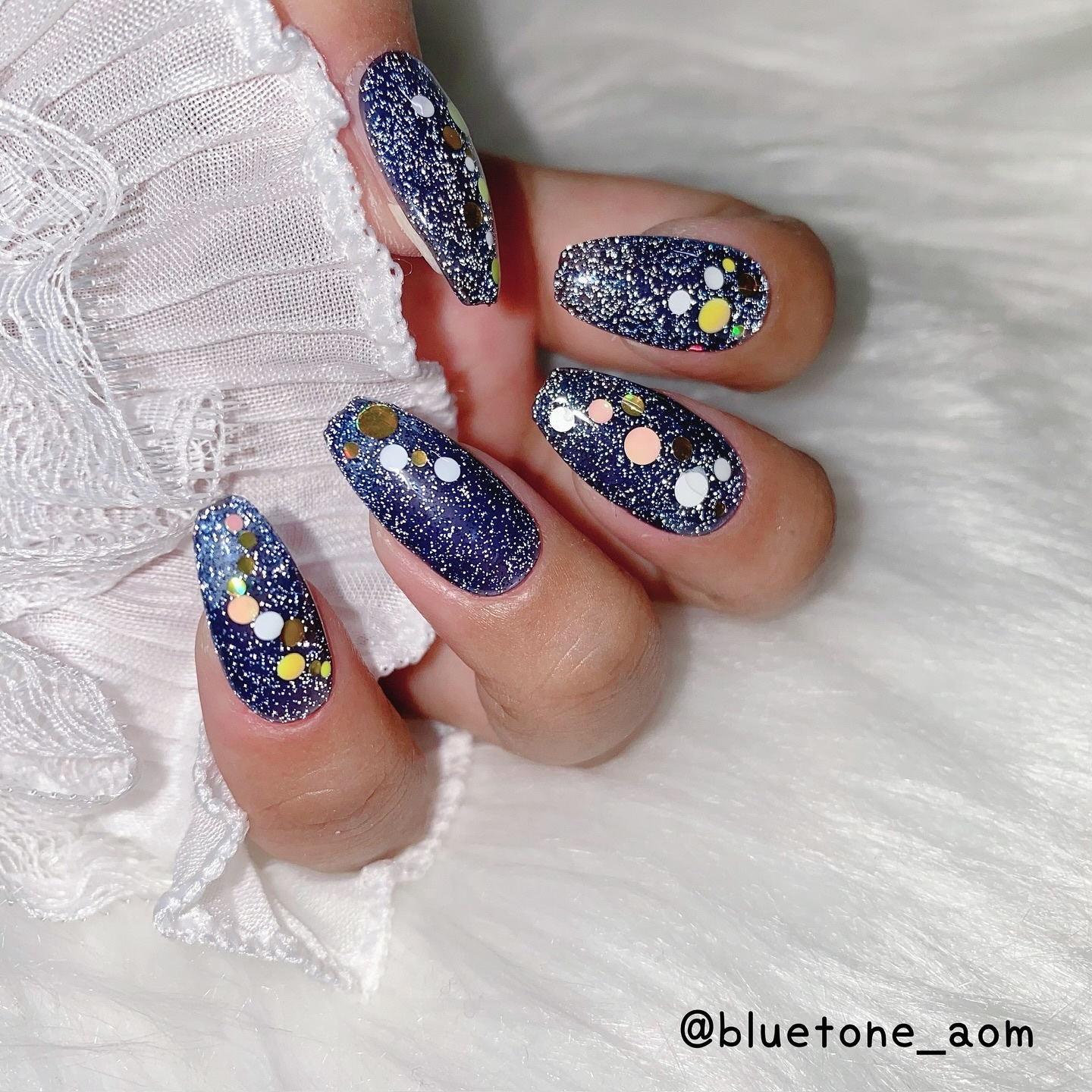 ラメがしっかりしてるし クリアカラーが入ってるから オーロラパウダー無しでも 充分キラキラしました! 反射強めのフィルムなので 実物はもっと うるうるとキラキラが強いです! ビー玉みたい🥺 ネイルシール長持ちさせたいけど ちょっと飽きてきたな〜って時とかに 全然違った印象になるのでオススメです! Seriaのベースジェル 本当にうるうるネイルしやすいので オススメしたい🙆♀️