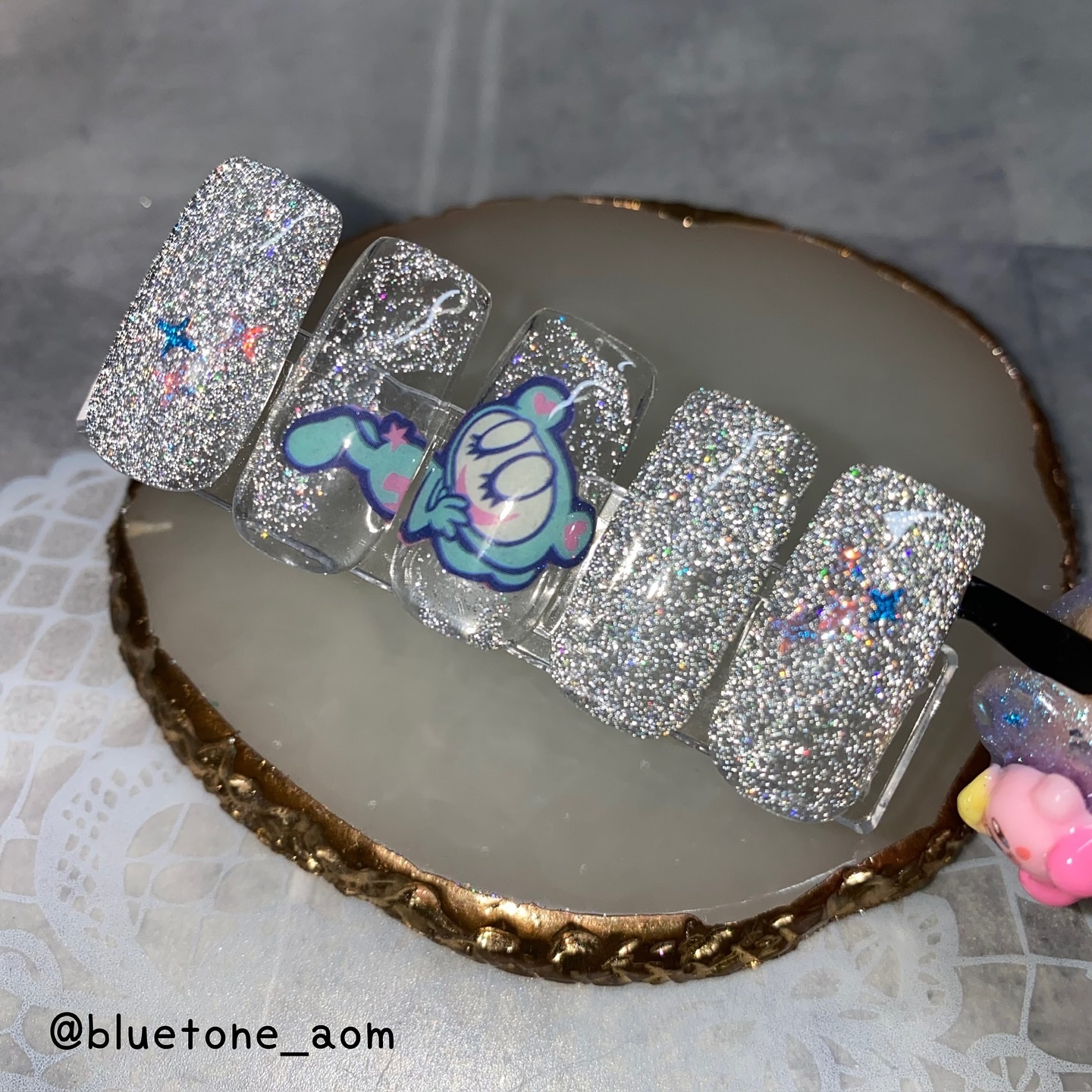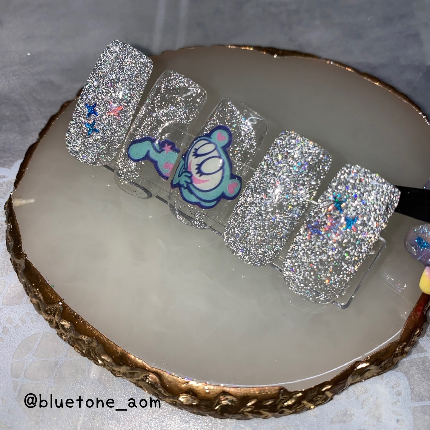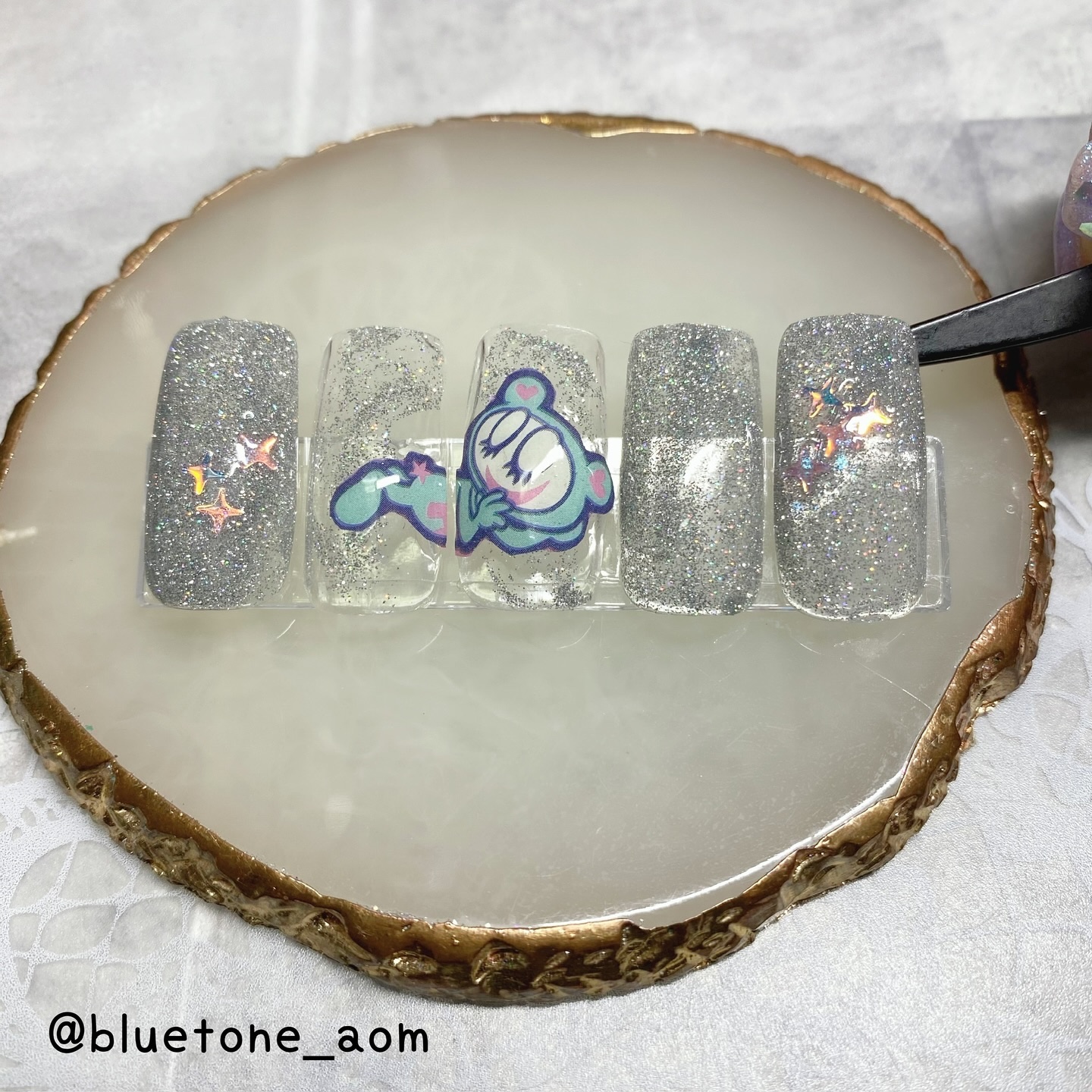 ベースカラーを塗ったらノンワイプトップを塗って硬化します。 クリア→ミラー感はあるけど、発色はそこまで濃くないのでガッツリシルバーを求めてる人は物足りないかも🤔 ホワイト→キレイにシルバーになりました! ミルキーホワイト→シャンパンゴールドみたいな落ち着いたゴールドっぽくなりました😳 ブラック→キレイにシルバーに!やっぱりブラックとシルバーは映えますね🤝ギラギラです! パウダーの粒子はちょっと大きめなのでちょっと不安でしたが擦ってみるとキレイにミラーになりました! ベースカラーで見え方も変わるので色々試しても面白いかもです🥰