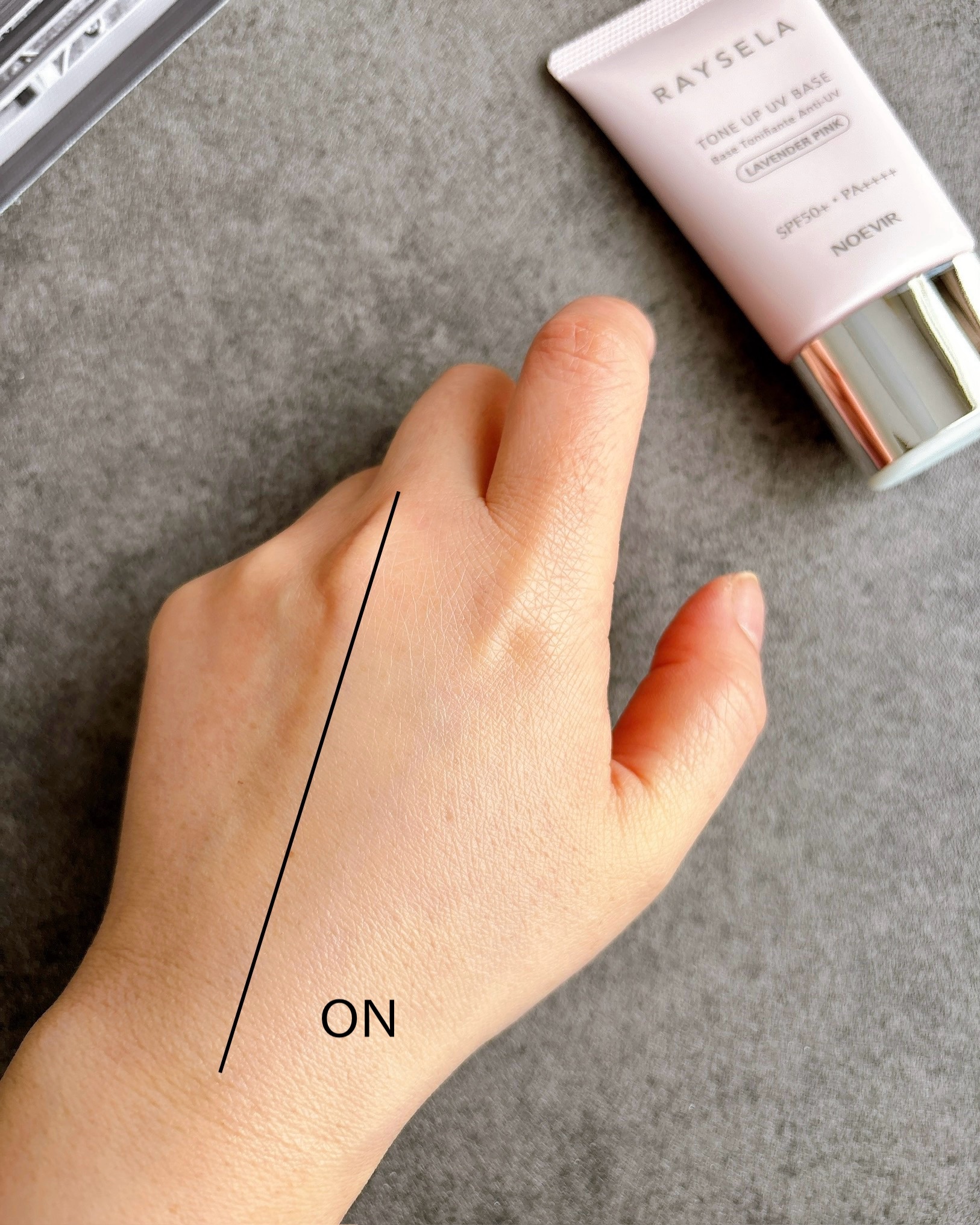 乳液のようにみずみずしいテクスチャーでワンプッシュで顔全体に伸ばせます。 スキンケアみたいにスルスル伸びてヨレたりせずに均一につけられるし、次に使うパウダーやファンデの乗りもアップ! トーンアップ効果が高くて肌を明るく見せてくれるし、ラベンダーカラーで白浮きせず血色良く見せてくれるのが嬉しい♡ ほどよくカバー力があるからすっぴん風メイクにもいいし、しっかりメイクの時にもどちらも使える万能トーンアップエッセンス。
