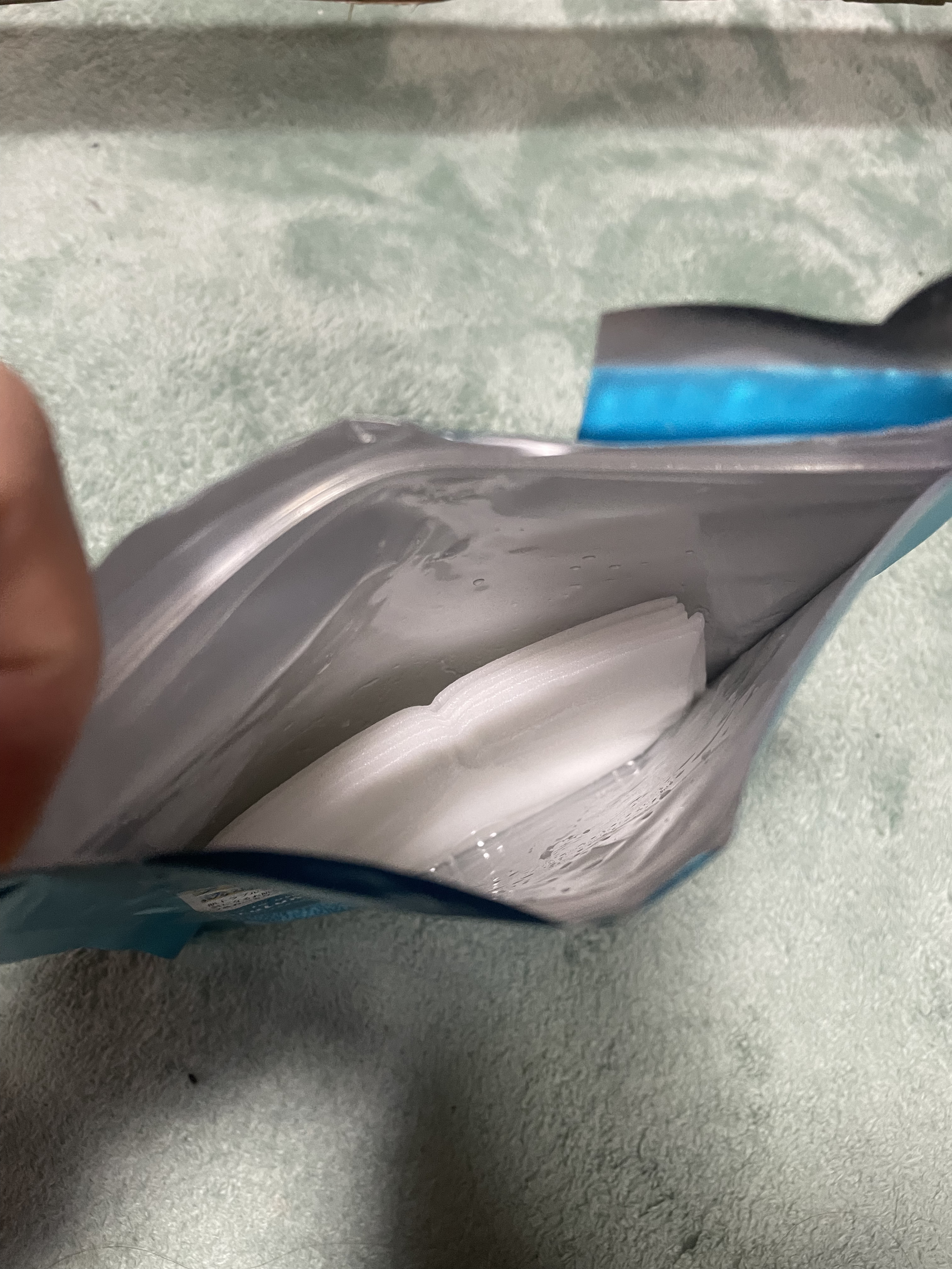 トレイに個包装タイプ初めてだな。 なかなか硬かった 笑 液はとろみあるけどあまりベタつきないあっさりめな感じ フィット感は、口元だけ何故か下方にズレて唇にシートが乗ってしまう ベタつき感なくしっとりしするのでそこは好感 その見た目からご褒美感もある