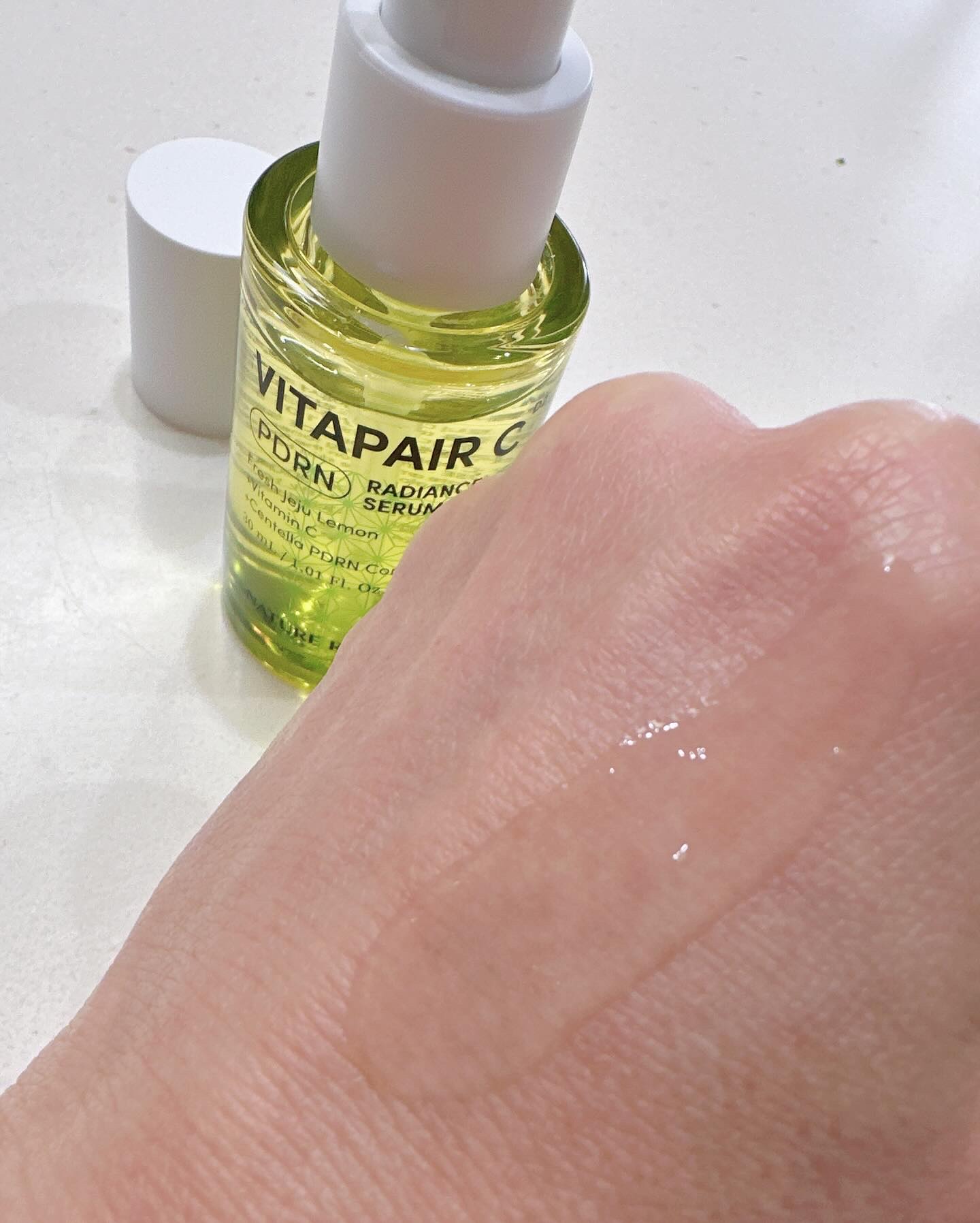 クリームは、こっくり濃厚ですが、肌に伸ばすとスーッと馴染んでサラッとなる! 気になる部分に重ねやすいので、 しっかり保湿力感じられます♡ 美容液はとろ〜り肌に吸い付くような伸びやかさ! 高濃度10,000ppmのビタミンカプセルが 入っているので、プチっと使うたびになんだかフレッシュ! くすみケア にも期待度大だから、 このW使い、終わる頃の肌が とっても楽しみになってます♡