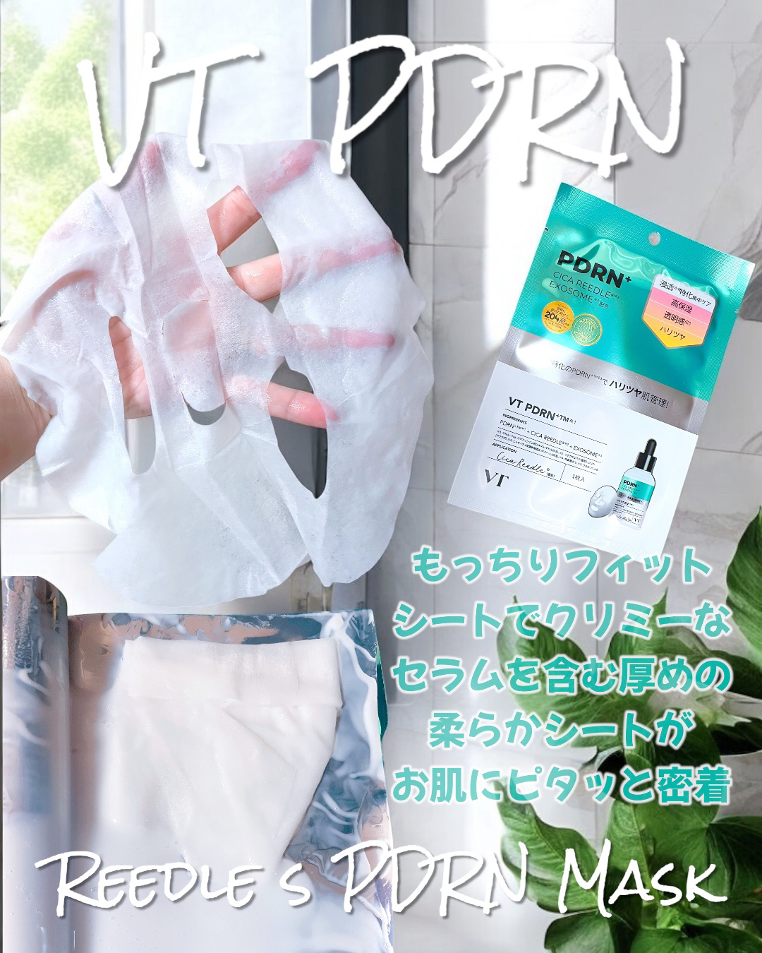 ハリ+ツヤ+透明感にアプローチ!ハリのない肌コンディションを整え、発光肌へと導く✨✨ 浸透力に特化したPDRN+™セラムで、ハリとツヤをサポート。VT独自のCICA REEDLE®が美容成分を深く届け、肌に水分と透明感を与えます。 セラムとマスクをライン使いすることで、自宅で簡単に高級エステ級ケアが実現できます。肌がツヤツヤになって、しっとり内側から輝く発光肌にもなりますよ!