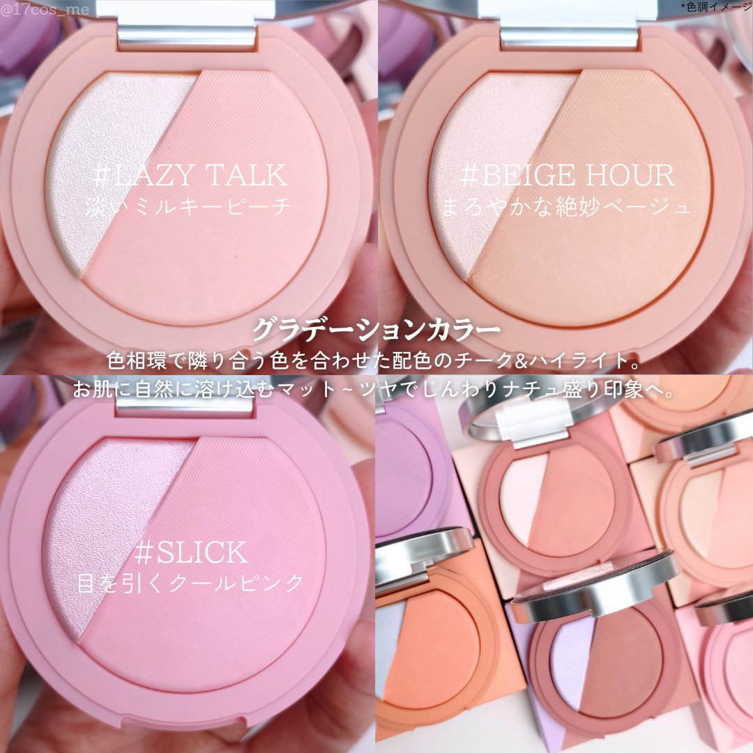 オーロラハイライト×ヴェールチークで格上げほっぺ💫 色相環を元に計算し尽くした、チークとハイライトで簡単にトレンド感のあるメイクができちゃう❤︎ 反対色の2色が入ったコントラストカラー! 透明感ハイライトと血色感チーク。互いの色が引き立ちあい、華やかな表情を作ってくれる♡ 隣接色の2色が入ったグラデーションカラー! 自然に馴染んでたちまち“元から美人ほっぺ”に