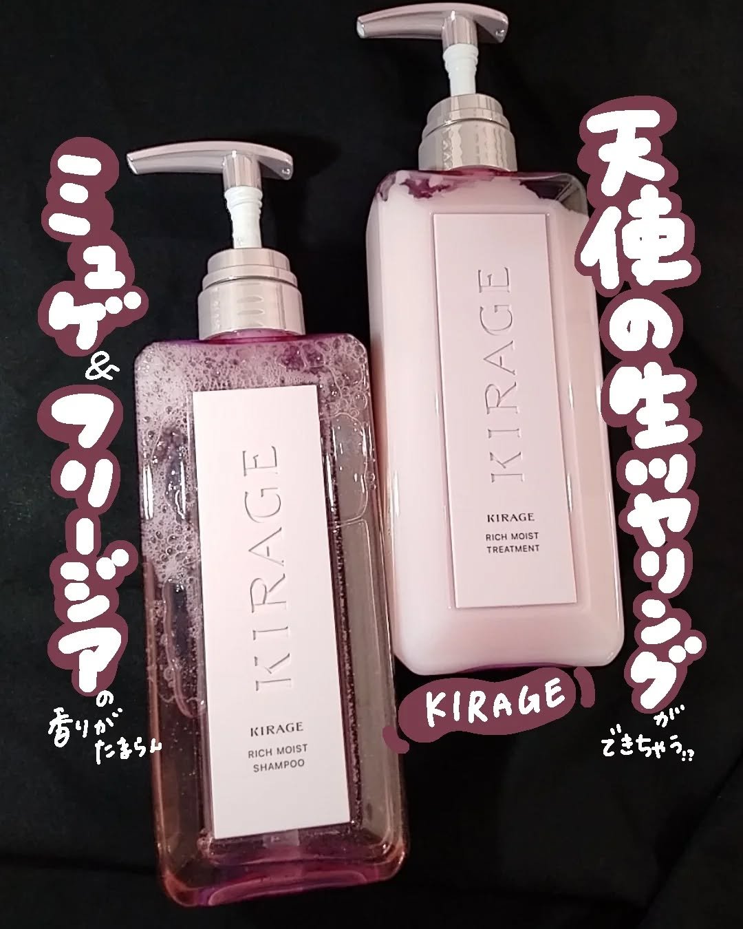 キラージュさまからいただきましたリッチモイストシャンプーリッチモイストトリートメントダメージも補修しながら、保湿も兼ね備えたヘアケア🤍エンジェリックリングオイル*¹というオイルなのに水となじみやすく、うるおいを抱え込みながら、均一に髪に馴染...