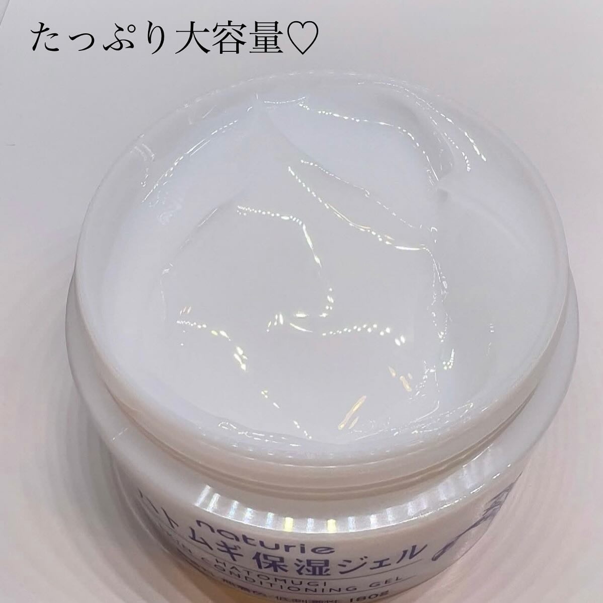 たっぷり水分補給できるさっぱり&高浸透処方で水分を蓄えやすい肌に導く天然保湿成分 「ハトムギエキス」配合の化粧水です。 みずみずしいテクスチャーの化粧水で、ばしゃばしゃとたっぷり使うのがお気に入り。 ぷるんぷるんのジェル。みずみずしく伸びて、すっとなじんでくれます。