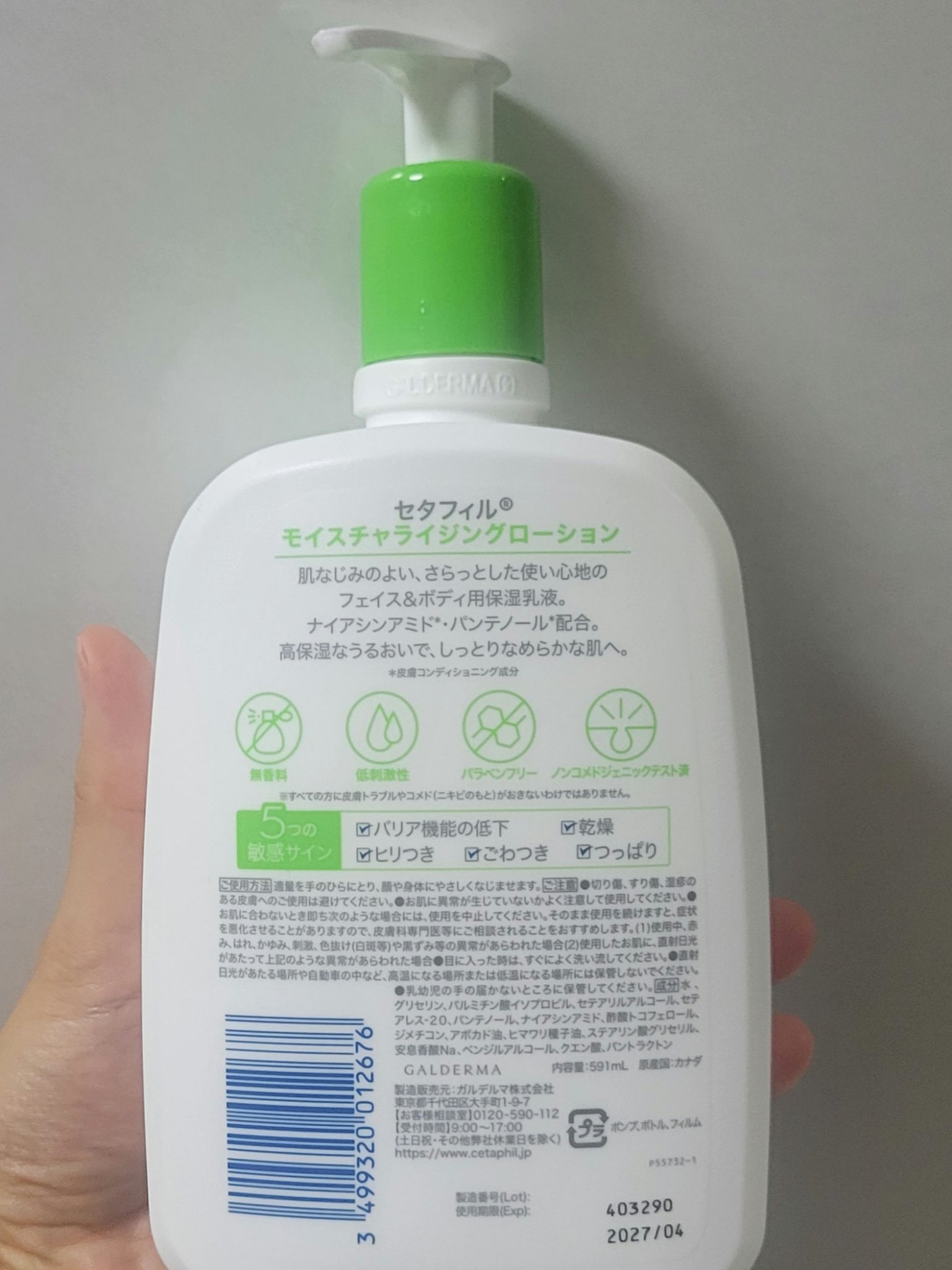 - 乾燥肌・敏感肌向け保湿乳液 フェイス&ボディ 高保湿なうるおいで、しっとりなめらか肌へ ナイアシンアミド*1、パンテノール*1、グリセリン*2配合。 肌なじみのよい、さらっとした使い心地。 ・高保湿なうるおいで、しっとりなめらかな肌へ導きます。 無香料、低刺激性。 日本の敏感肌の方でパッチテスト*3、スティンギングテスト済。*4 *1: 皮膚コンディショニング成分 *2: 保湿成分 *3: すべての方に皮膚トラブルがおきないわけではありません。 *4: ピリピリ、ヒリヒリといった使用直後の刺激感を確かめるテストです。すべての方に刺激感がないというわけではありません。