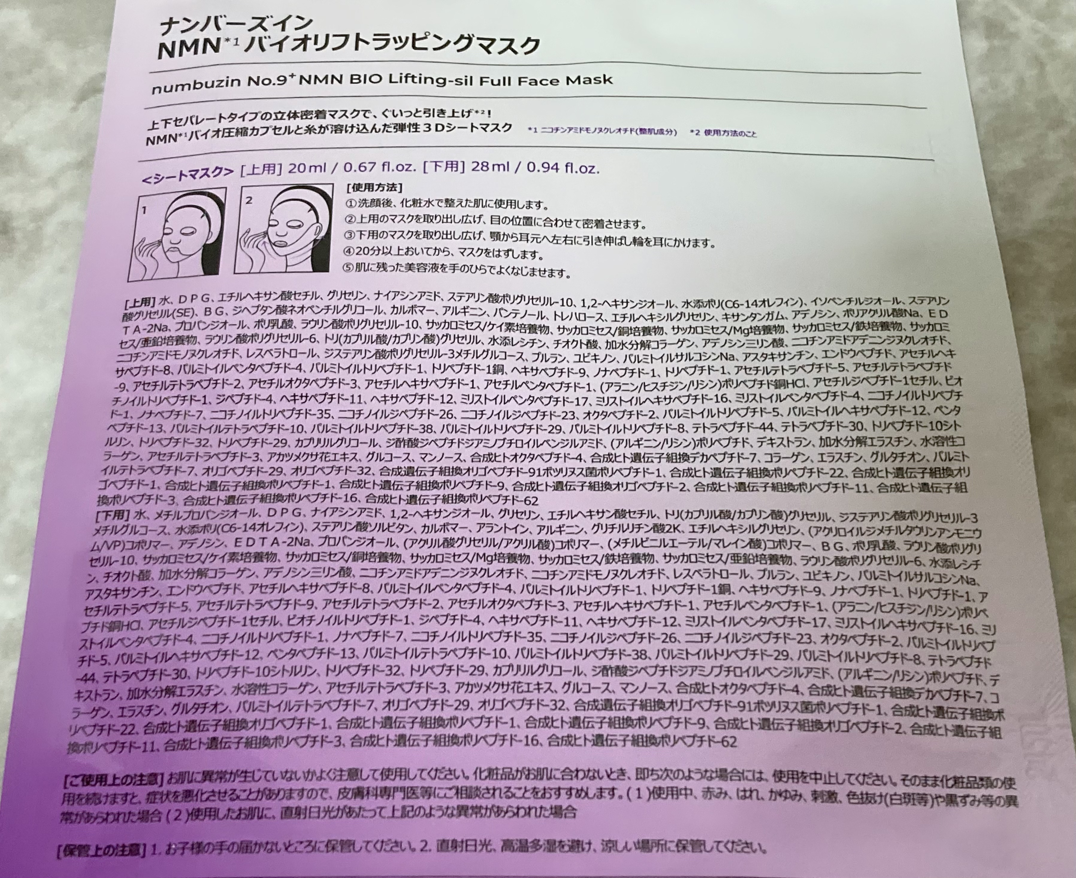 商品詳細情報numbuzin 9番 NMNバイオリフトラッピングマスク